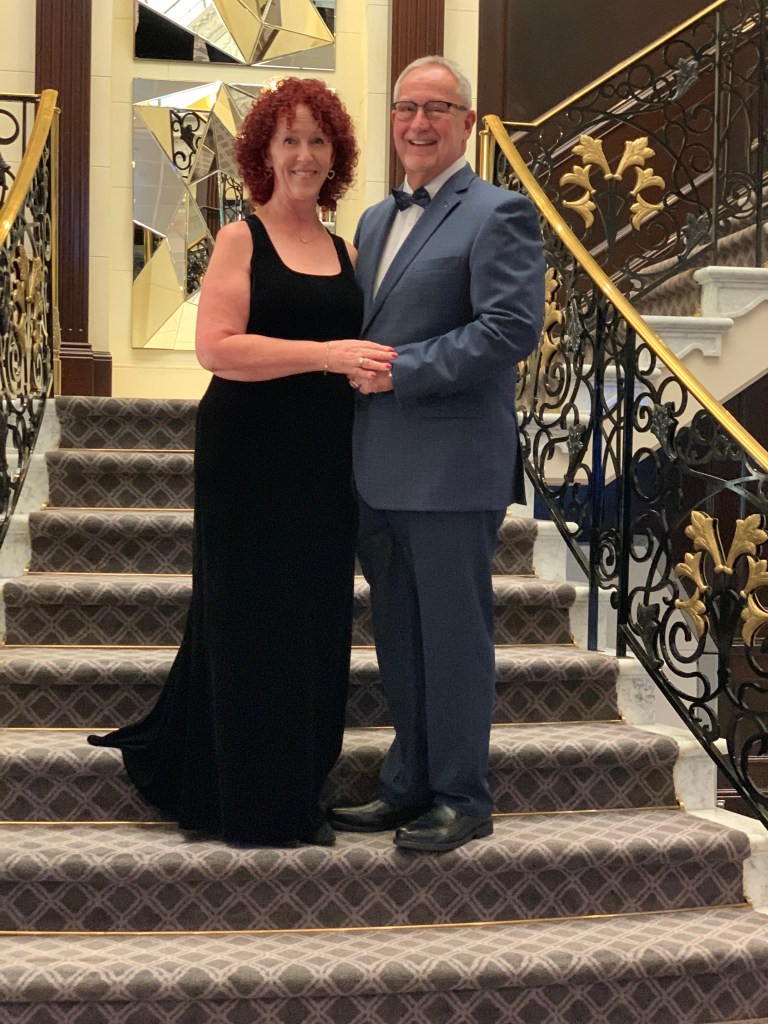 2. What an incredible experience! The ship looks fabulous, almost as Fabulous As you guys look on the staircase! Thanks for posting the pics they had so much to your narrative. Everything is good here, and battened down.