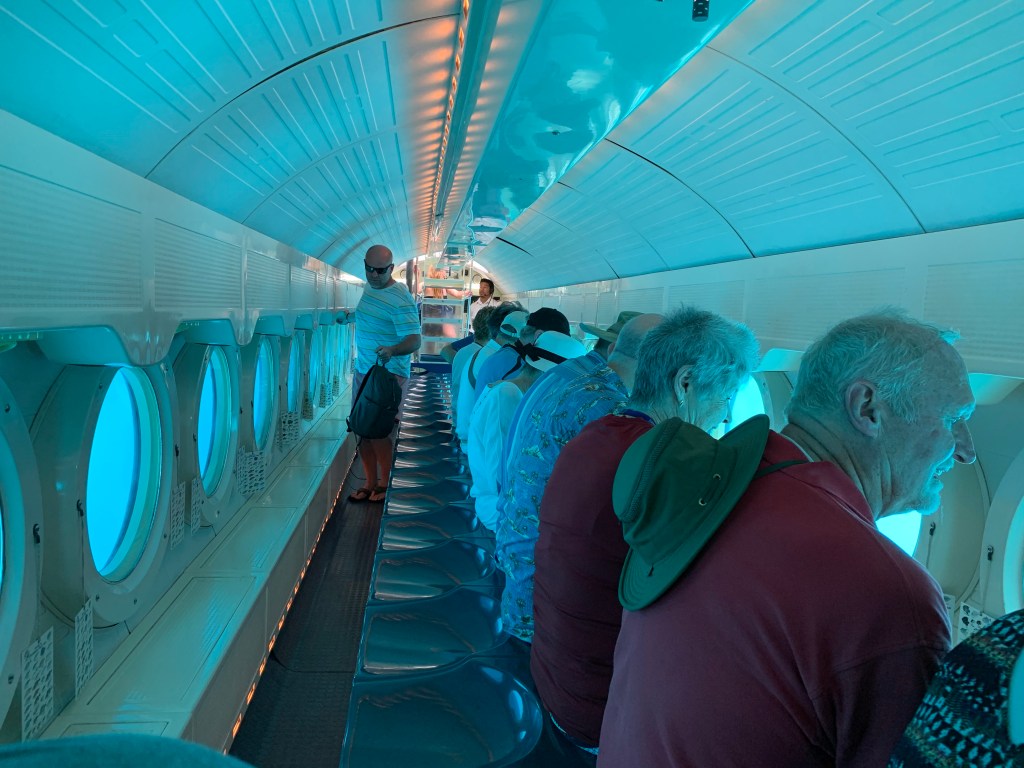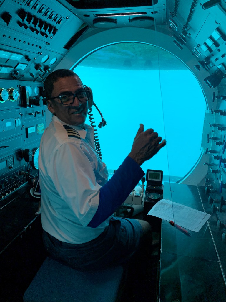 We went on a submarine ride in Aruba and took Groot. First we introduced him to a very large iguana and almost lost the poor little guy. Lesson learned, apparently iguanas like groots. The submarine ride took us to the depth of 130 feet over a coral reef where we saw 2 sunken ships, sea turtles, sting rays and various fish including huge grouper.
