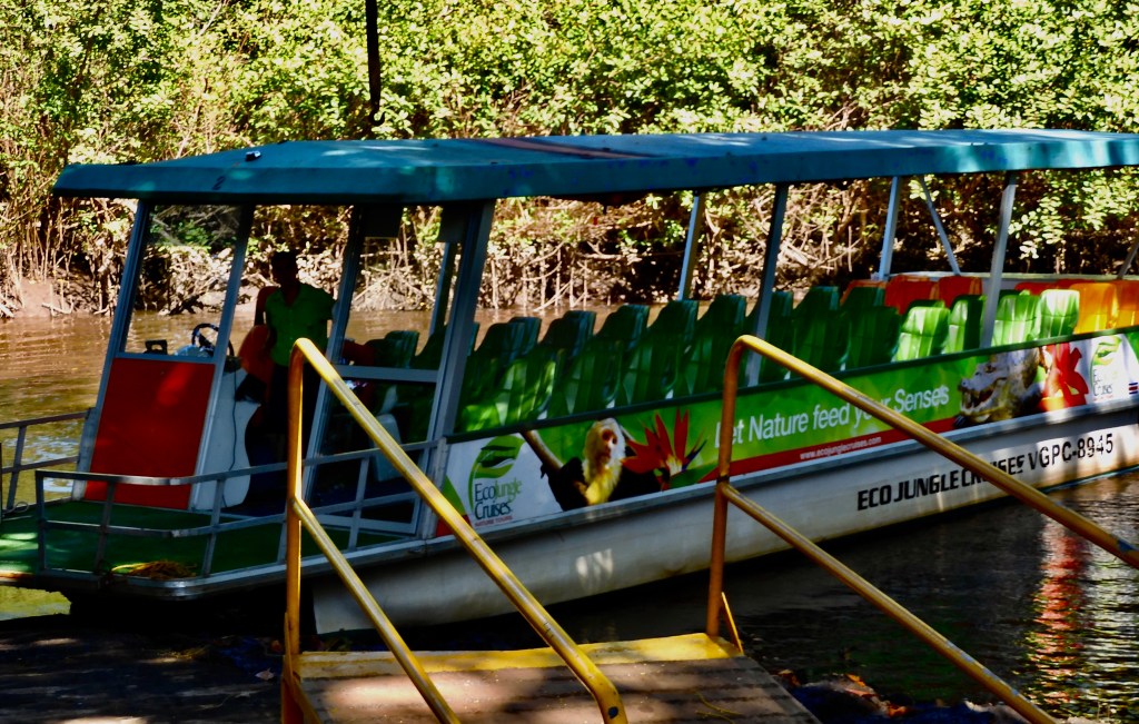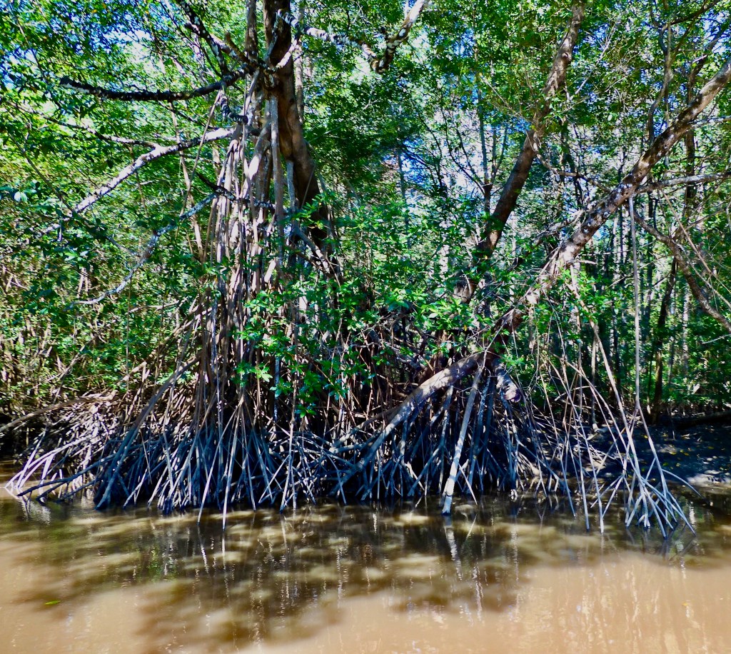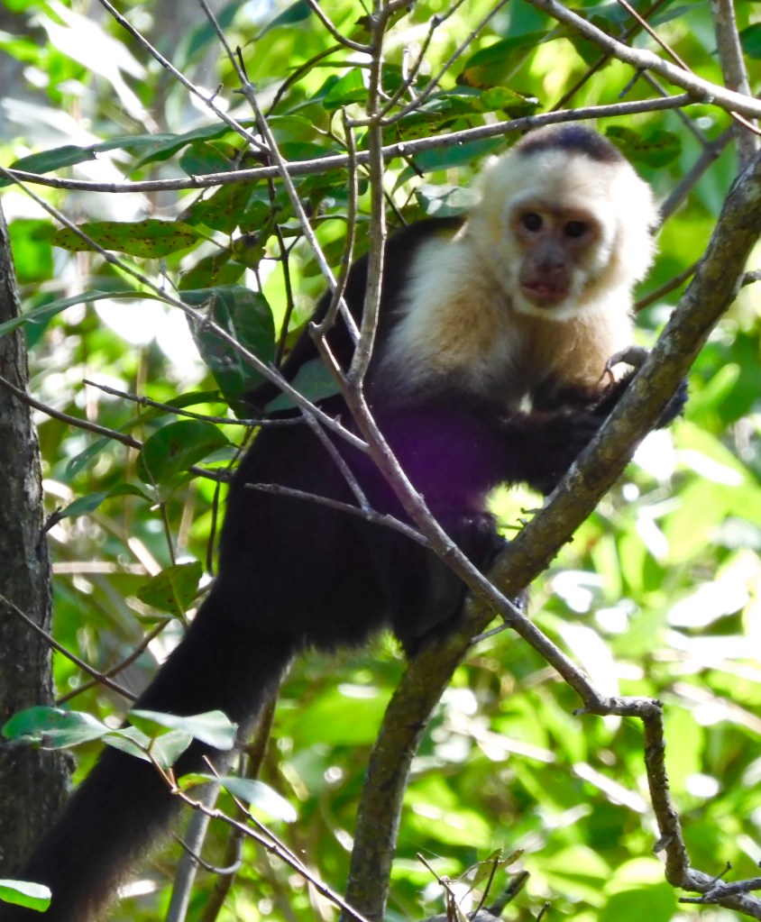 Next we went down the hill to the river that is famous for their crocodile. We boarded a boat and took a tour of the mangroves. I would love to spend more time bird watching since there are more than 120 species of birds living here. Soon we spotted monkey’s, two different kinds. I immediately recognized the howler monkey, hollering at us from the trees. They were very entertaining to watch.