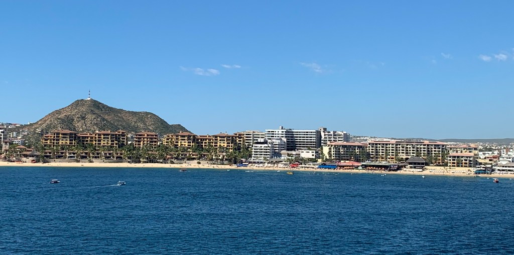 We started to sail back to the harbor and were able to see the lovely resort areas of Cabo and some beautiful homes. We didn’t go into the town to explore but understand there are many brand new, high-end resorts being built. This area is also known for big-game fishing. Bing Crosby, John Wayne, Phil Harris and Desi Arnaz built a hotel in Cabo in the late 1940’s. The traditions of A-list stars continues today.