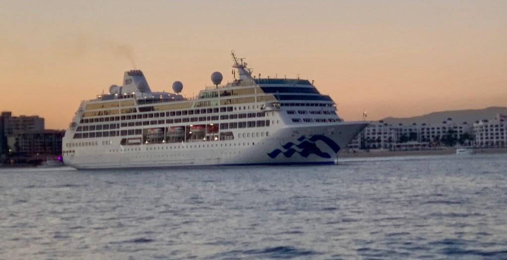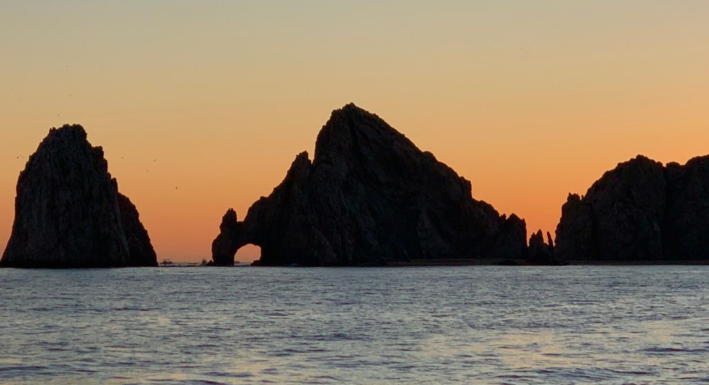 Friday, January 17th, we were cruising slowly up the coast of Mexico and then saw a beautiful mountain range in the distance. We’ve never been to Cabo, so we went up to top deck as we entered the harbor. Suddenly the majestic rock formation that Cabo San Lucas is known for – El Arco (the Arch) and Lover’s Beach. We anchored in the harbor where we could see the rock formation on port side and the town on starboard side. Hehee, did you catch that? It’s like we live on a ship – port, starboard, forward, aft. Easy way to remember ‘port’ side, ‘port’ and ‘left’ both have 4 letters.