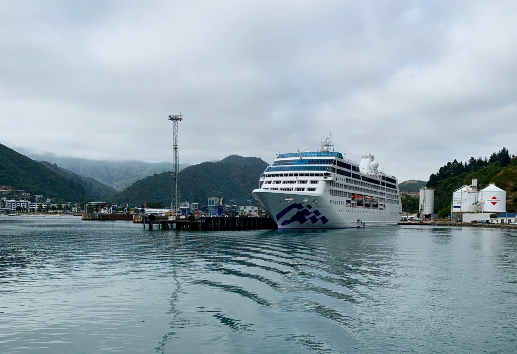 New Zealand has a North Island (where Auckland is located) and the South Island and divided by Cook Strait. The ride through the Cook Strait was a wild one! Again, great to sleep and only wake up when something crashes across the cabin. Lol.