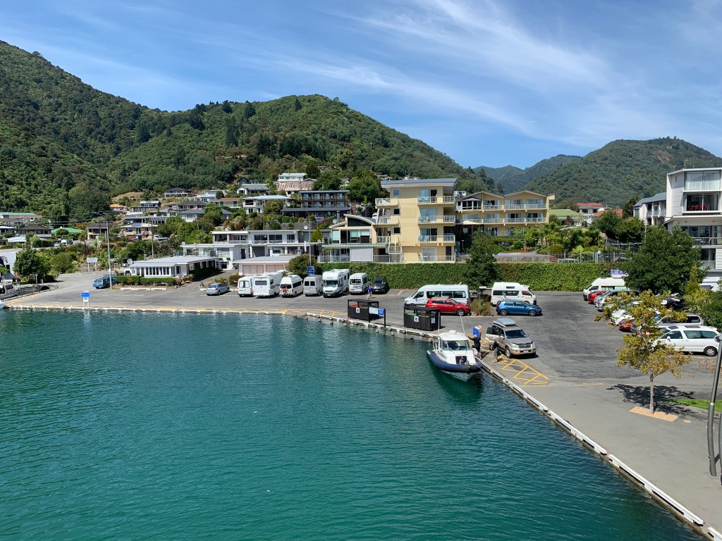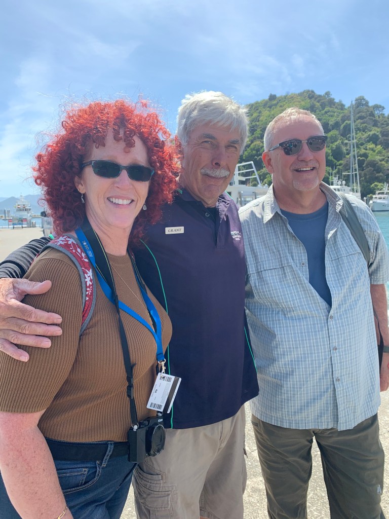 We arrived in Picton early in the morning. Navigating our way through channels into the Marlborough region of NZ (wine country). This region is famous for the Sauvignon blanc grape that loves the perfect combination of sun and coolness. Picton is a little town at the head of Queen Charlotte Sound on the Northeast corner of NZ’s South Island. Population is 4,702. The sun is always shining. January and February are the warmest months and averages 72F. Winters tend to be mild with an average of 58F (wow, that’s winter!).