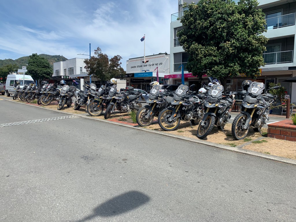 We stopped at an ice cream shop to have a scoop of ‘hokey pokey’ (vanilla with honey). There were hundreds of motorcycles in town. All wearing the same gear with a map of NZ on their backs (with sponsors). It was an international motorcycle rally. I seriously need to come back to drive these roads! We strolled through the cute little town and poked our heads into some of the shops. I did buy a pendant made from their paua shell (very colorful).