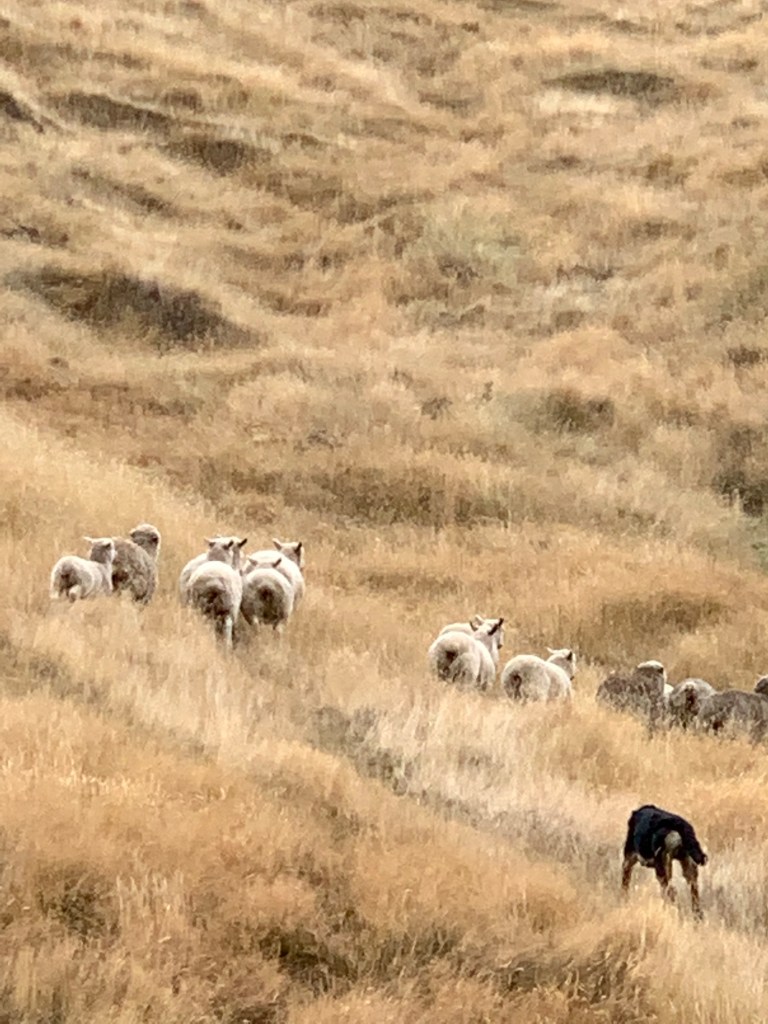 He demonstrated using his barking dog to run up the big hill behind us. He would give the dog commands, both vocal and whistle. The dog would stop, look back and wait for the next command. It was fascinating watching him split the herd into two groups, put them back together and then bring them down the hill to see us. The owner then gave him another command, the dog barked and chased the sheep back up the hill to where they were grazing.