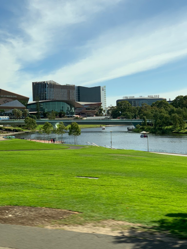 It was time to head back down the hill and through Adelaide. We went through the downtown area which was very modern with tall office buildings, museums, art galleries, shops, cathedrals, green parks and much more (including the Aboriginal Cultural Gallery).