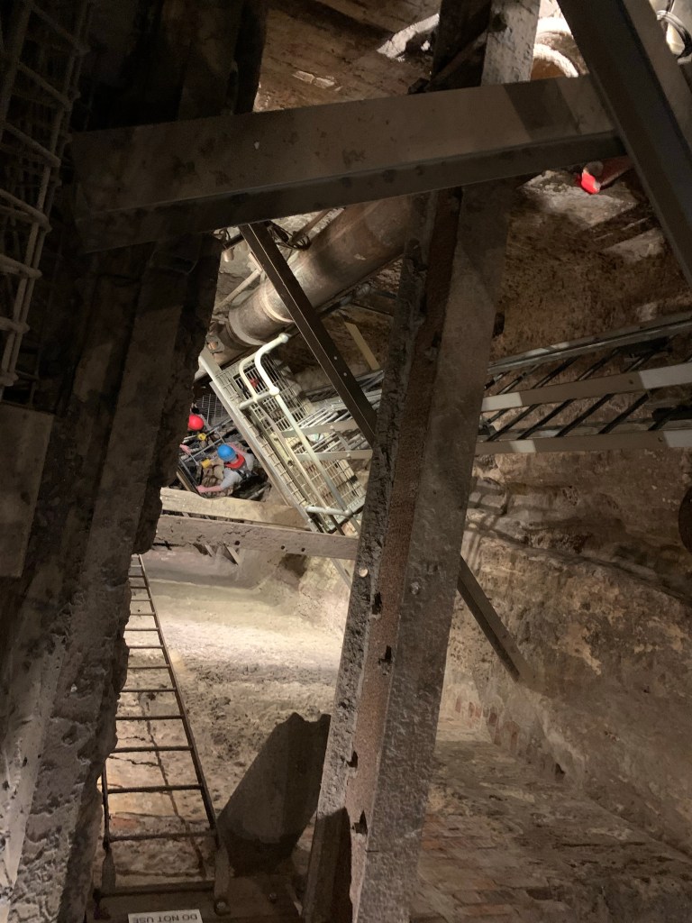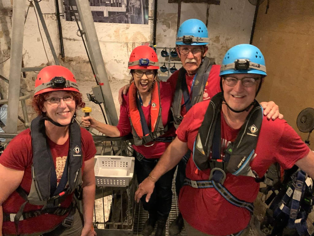 We turned our headlamps back on and made our way deeper into the tunnel system where we found the waterway. We got into little 2-person boats (replica convict punts) and paddled our way through tunnels. At some point, it was too narrow to paddle and you just used your hands to grab the jagged rock walls on each side. Soon we made our way back to the ladder system, locked in and began our ascent. Now back to the woman traveling alone. Our concern was valid. She was unable to climb her way out, so they had to hook a rope to her harness and hoist her up 70 feet. At least they were prepared and looks like this may be a common problem. Glad they got her out and she was ok. We finished our tour of the prison and headed back to the port.