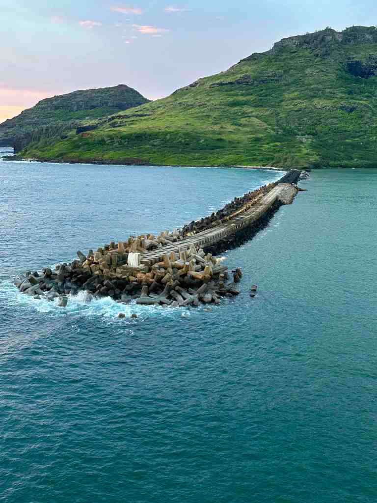 We went out early to see a gorgeous sunrise.  We entered a very small port called Nawiliwili (fun to say).  We could see mighty waves breaking on the rugged coastline.  It was fun entering the port because the pilot had to do a ’s’ turn to get to the dock.