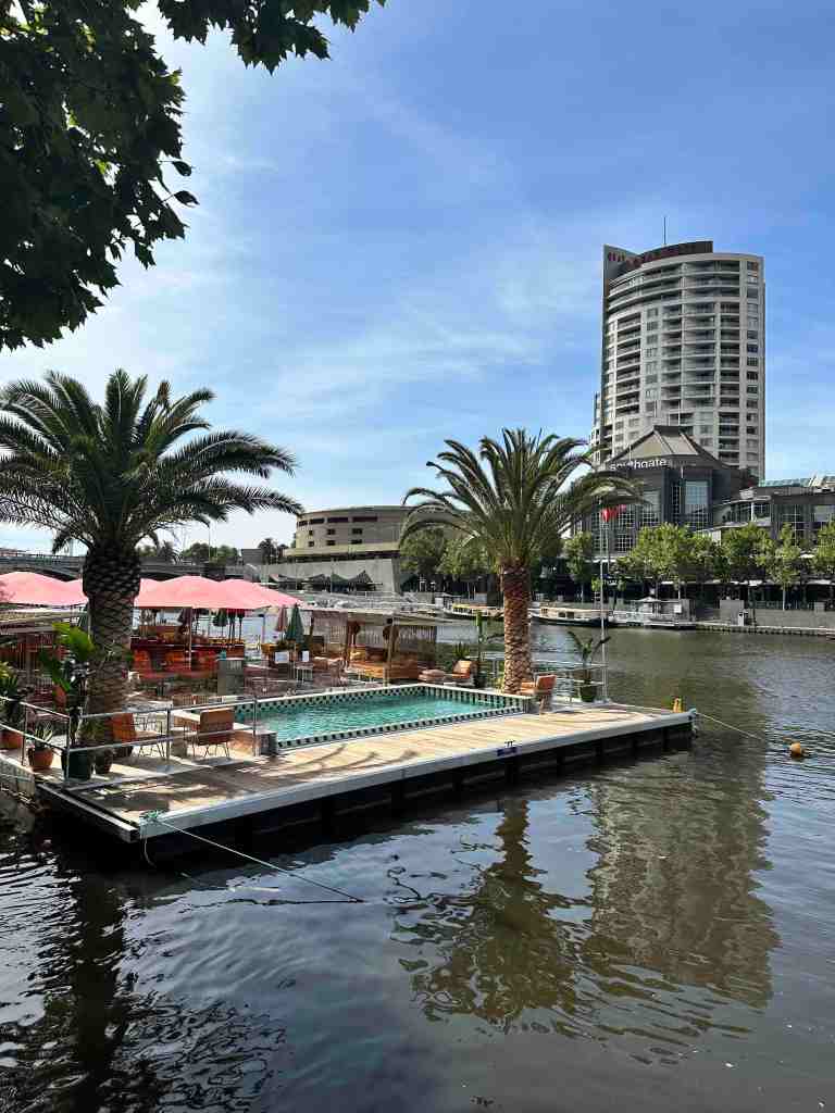 We left the tram and walked back to the shaded path by the Yarra River. We found a cool restaurant called Arbory Afloat (barge floating in the river) and found a nice shady seat for lunch. We quickly ordered something cool to drink and glad they had some ginger beer. Refreshing! We had some delicious tapas with our friends, Carmen and Pedro, relaxed and talked about our day. Decided to stroll back to the shuttle and head back to the ship.