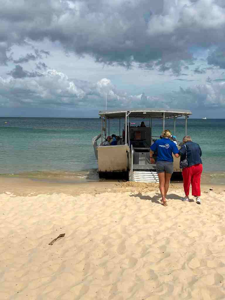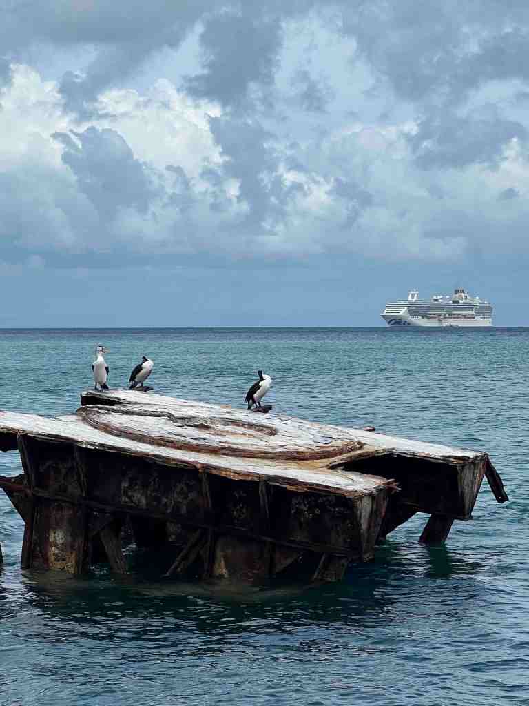 I’m still feeling poorly so I’m asking Bob to go on tour today without me. We anchored and the tenders started taking tourists to the island. Moreton Island is just off the coast of southeastern Queensland near Brisbane. The island offers a resort day at Tangalooma Island Resort. Many passengers went there to snorkel. The island also has huge sand dunes and others went to toboggan down the dunes. Fun!