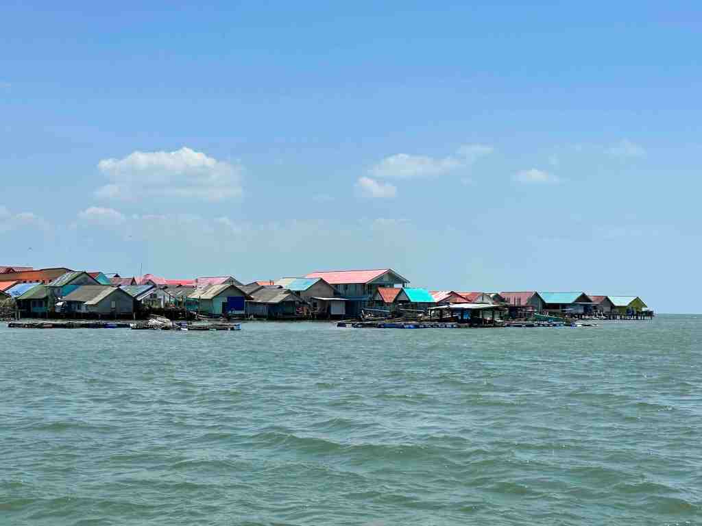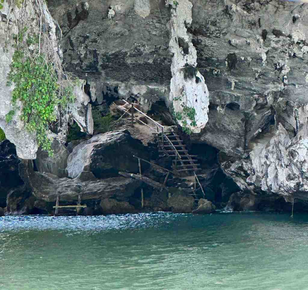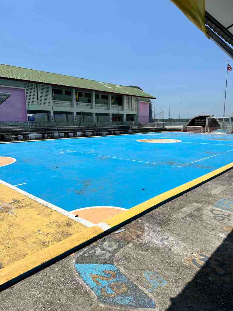 After we explored, we went further into the park, saw many islands, mangrove forests and suddenly in the middle of nowhere, a town! Yes, a floating town attached to one of the rock formations. Our guide said it was a muslim community with some 2,000 people living there. It’s a fishing village on stilts. We docked and got out to explore. We found the school and saw the very young students taking a nap on the floor. Just outside was their floating play area (ball court). We saw shops, houses, restaurants, etc. Very interesting.