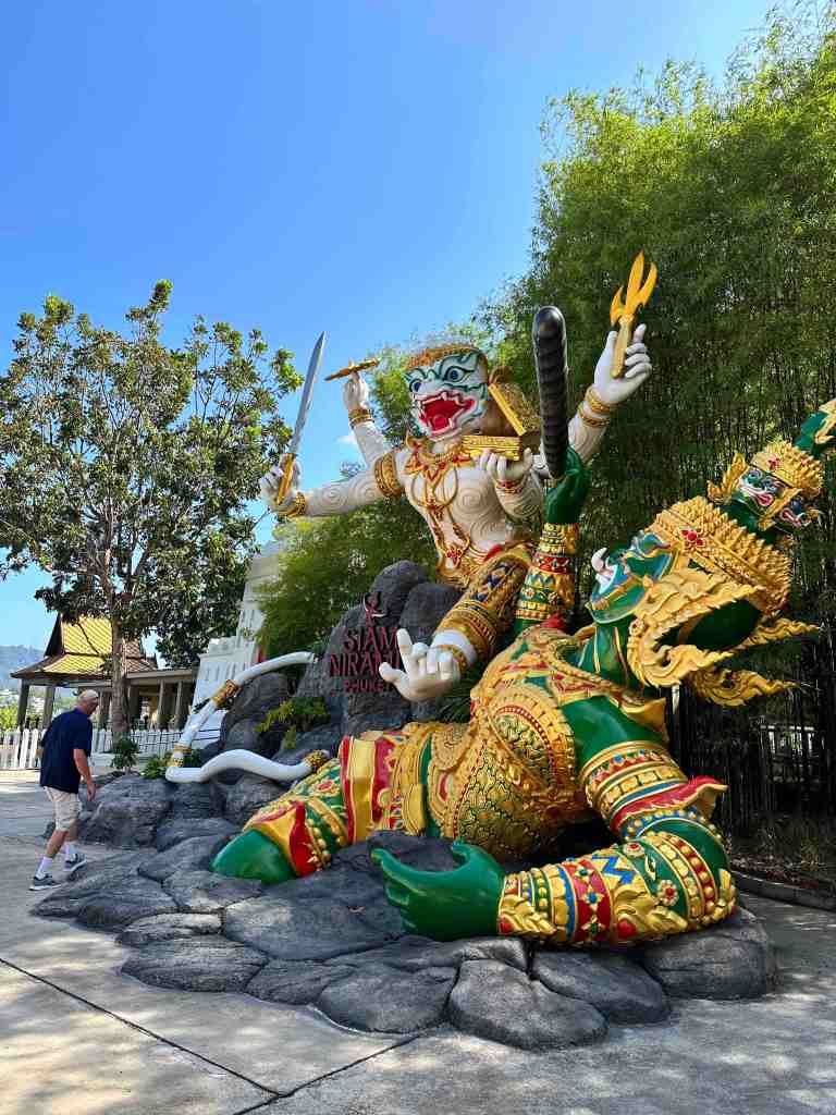 We didn’t have enough time in Phuket to explore the main resort area, but what a fantastic adventure seeing the Bond Islands. We boarded our bus and went to a beautiful facility that has dinner shows. We were at Siam Niramit for a buffet lunch. The main dining hall probably seats 1,000 people. There were not many people there for lunch but nice of them to have a welcome sign for the Island Princess. Folklore dancers greeted us at the entrance and we proceeded upstairs where they had at least 25 separate stations of different Thai foods. We had a very nice lunch and then went outside to take some photos before boarding the bus and heading back to the port.