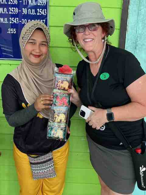 It was very windy when we arrived in Phuket this morning so the waves were big. We are in the Andaman Sea. Unfortunately, we are anchored so we have to use tenders to go ashore. Phuket authorities have large vessels they sent to the ship that hold a few hundred people at a time. We were delayed for a time due to the unsafe conditions. Finally, they gave the ok and we boarded the boat to go ashore.