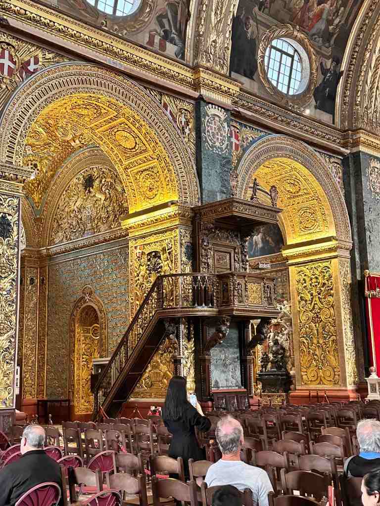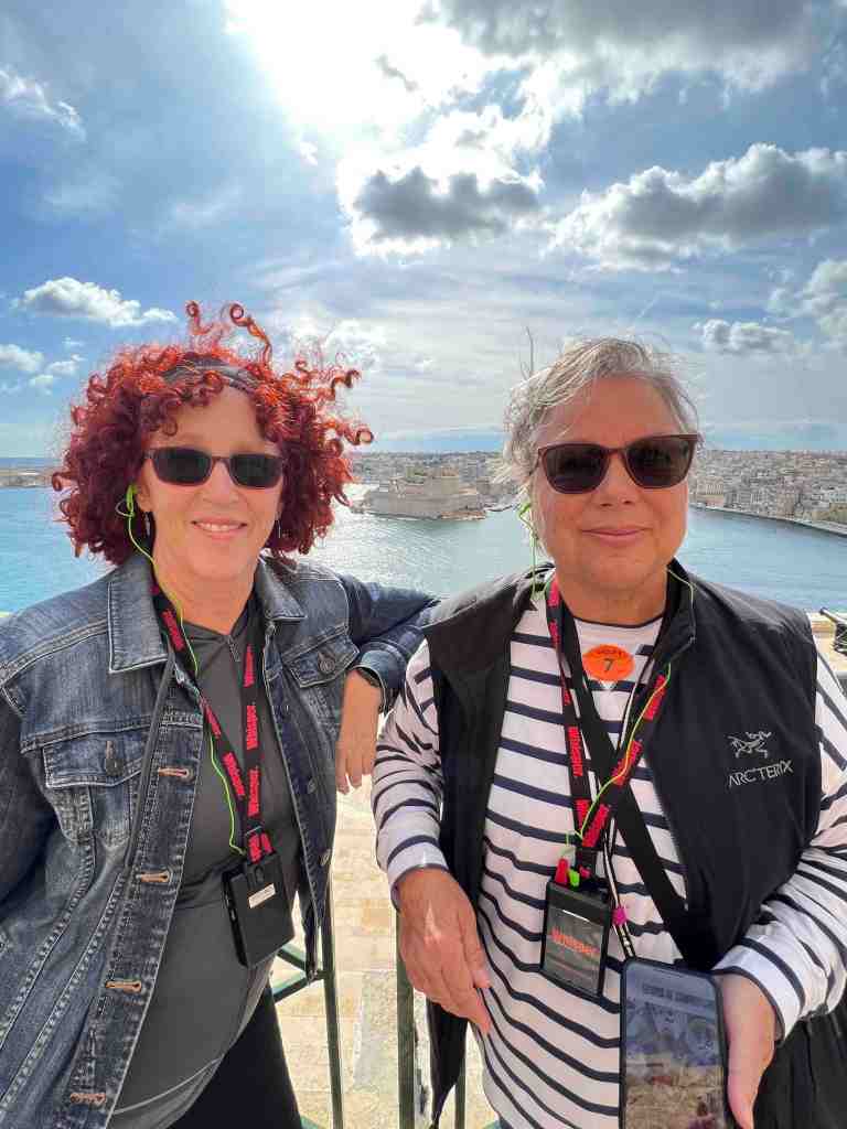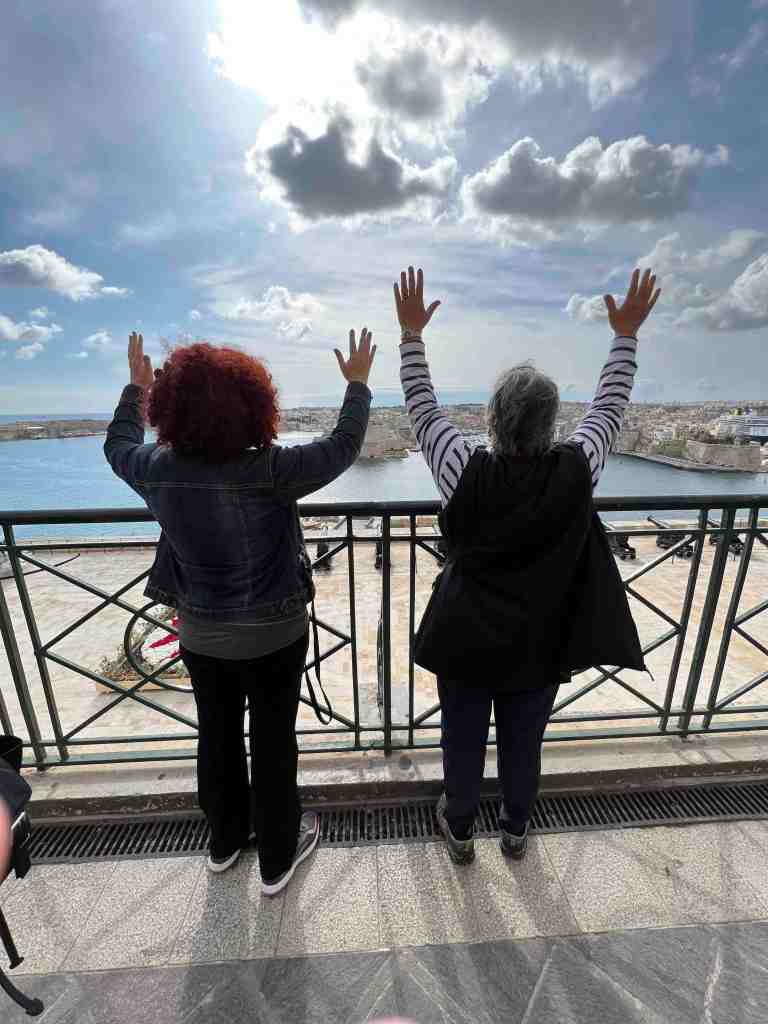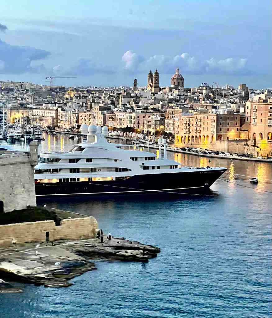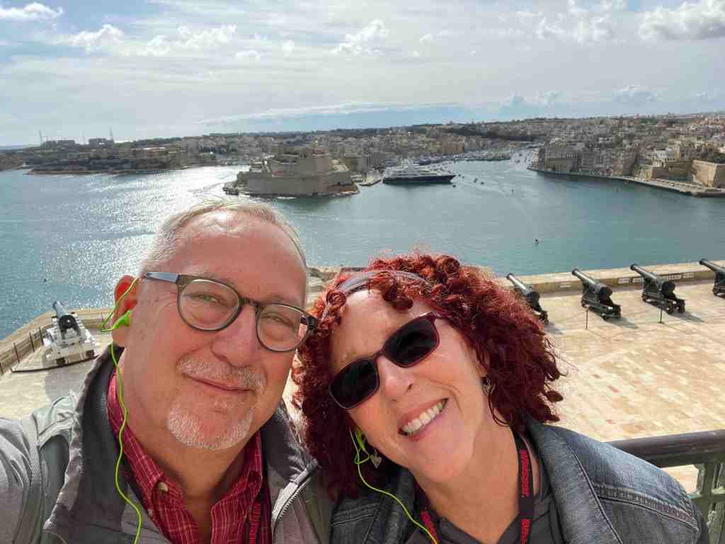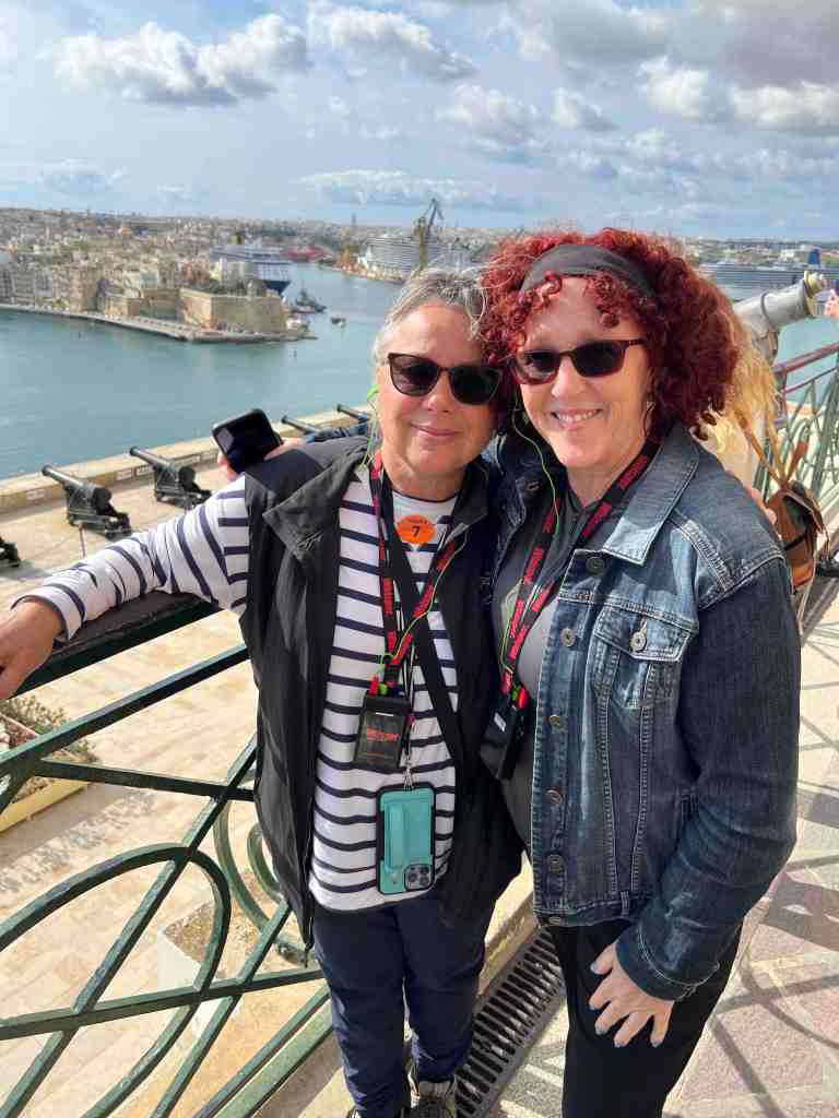 I opened the curtains at 6 am. Breathtaking! What is this magical place? We are docked right in the old city of Valletta, Malta. The full moon is sparkling on the water with the old city as the background. Valletta, the smallest capital of the European Union, is a UNESCO World Heritage Site.