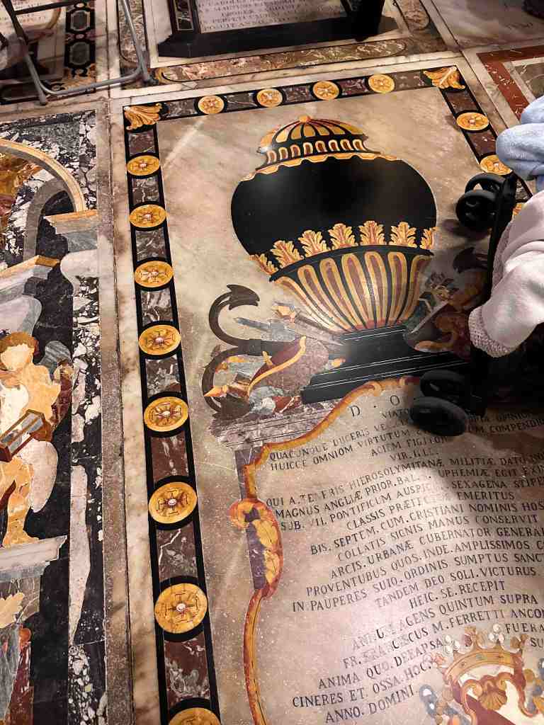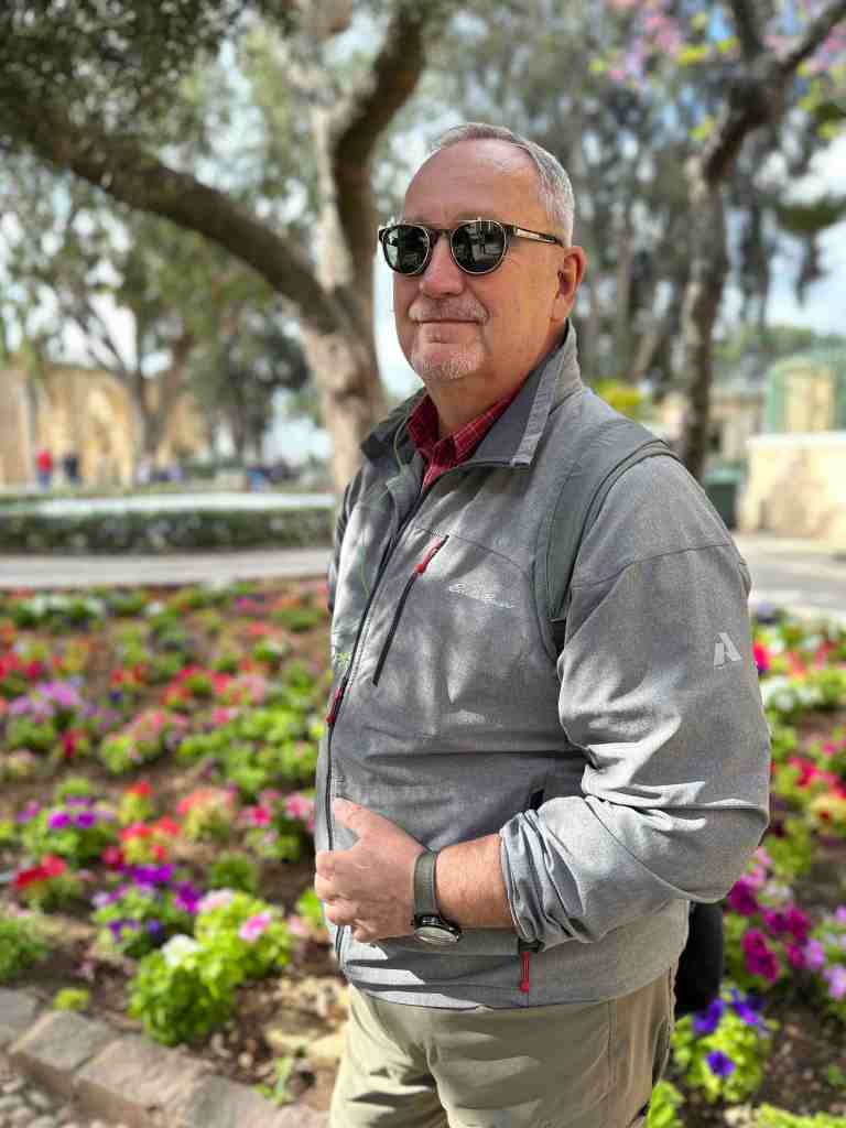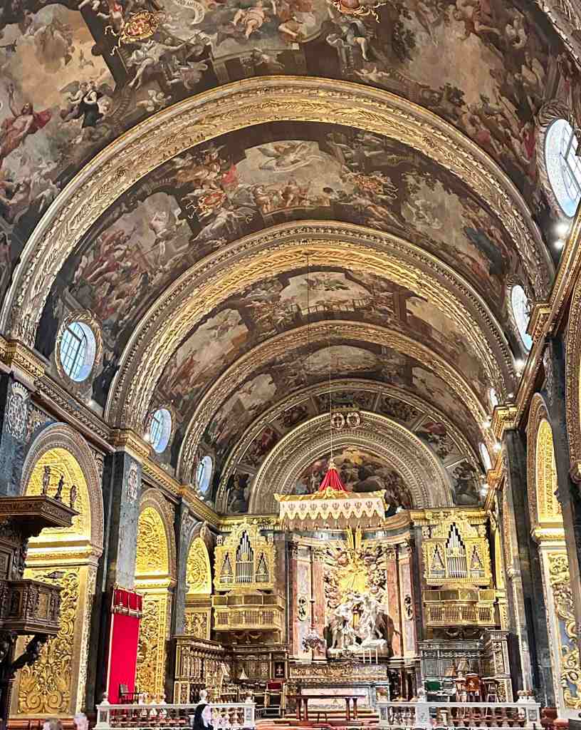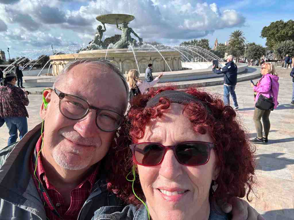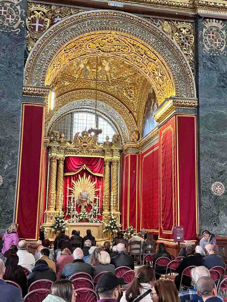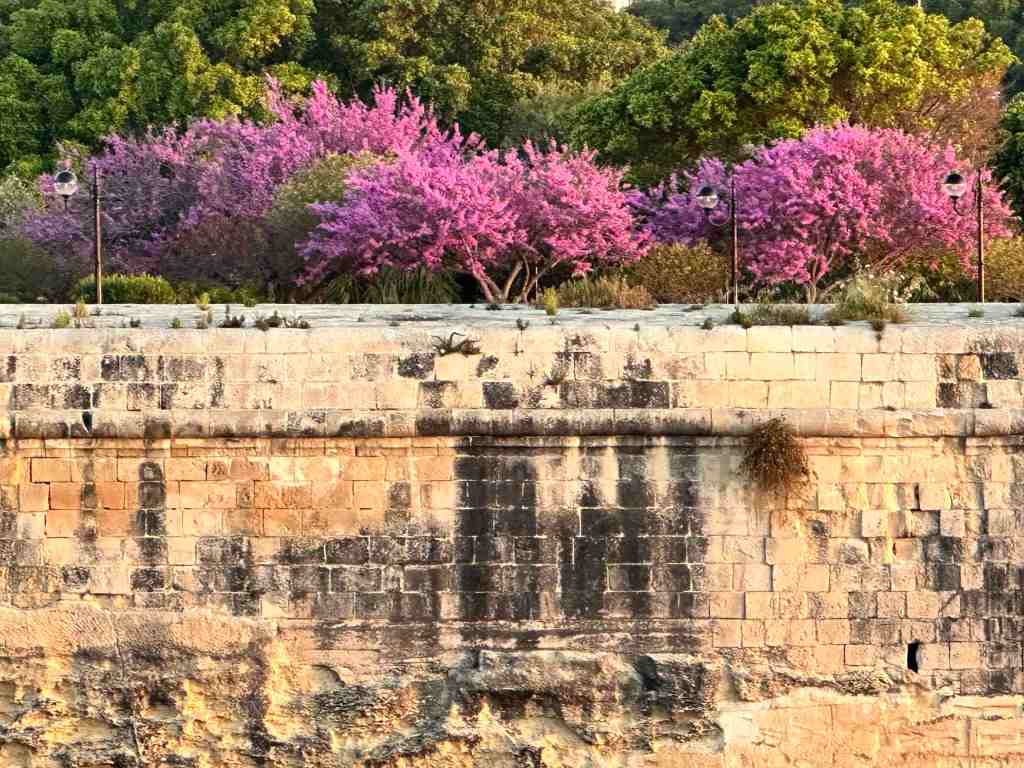 We disembarked the ship for a tour. It began with a walking tour of the old city. We took a bus to the top of the ancient wall. The old city is elevated above the harbor. It’s a gorgeous day, blue sky and nice spring temperatures. The flowering trees are hot pink. The ancient walls are tall and wide. Gardens that overlook the port are colorful. We can see yachts in the marina. Impressive fountains adorn the town. It’s a very walkable city with many restaurants and shops. We quickly took a peek in St John’s Basilica. It’s Good Friday and we didn’t want to interrupt any ceremonies. Every basilica has it’s own unique beauty. St John’s had a high, barrel shaped ceiling adorned with paintings, gold arches and round windows that allowed the light to shine in. The church had a golden color inside and elaborate marble floors that were very detailed in story telling.