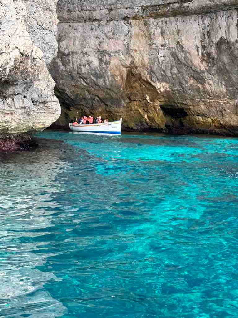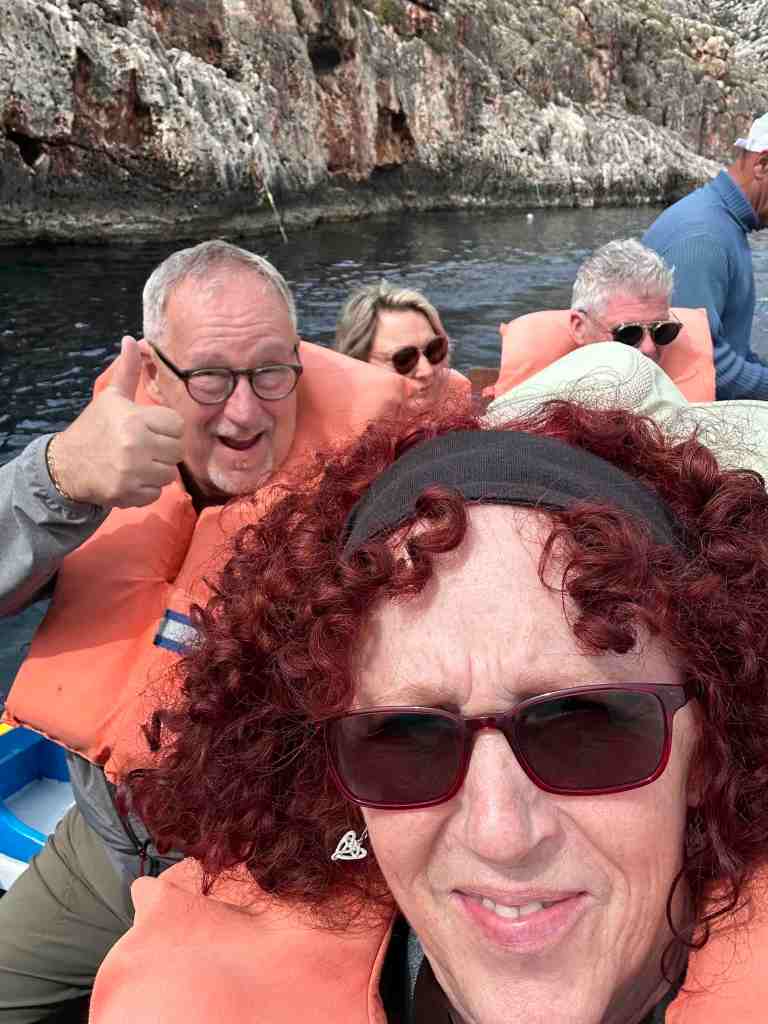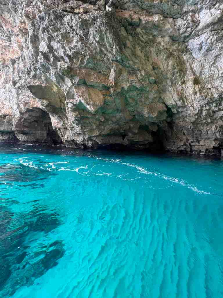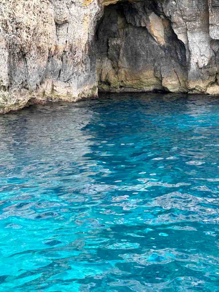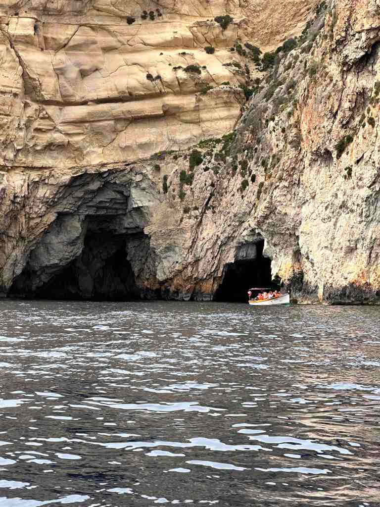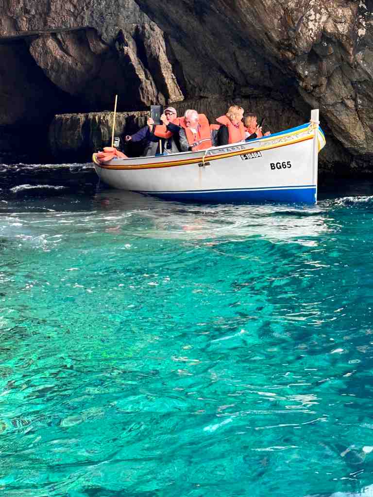 After lunch, we drove to Zurrieq, famous for the blue grotto. We paid 10 euros, got into a small boat and motored out around the corner to the blue grotto. It did not disappoint! We were in the boat with our friends, Bev and Peter. We went into multiple natural sea caves with the bluest of blue water that was very enchanting.