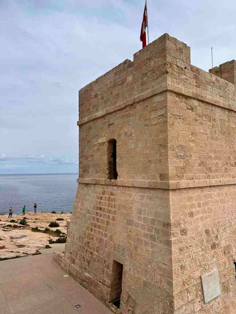 Next we visited the Malta Experience that is an educational audio-video show telling the story of 7,000 years of Malta history (we walked through an underground tunnel to reach the theater). It’s staggering what this island has been through. On December 28, 1943, the unofficial white-red flag of Malta was augmented by the addition of a blue canton bearing a representation of the George Cross, a military decoration granted by King George VI of the UK for the heroic defense of Malta by its inhabitants during World War II. It was an excellent presentation of their history. My mind was overwhelmed with the information. I’ll only touch on the history from WWII.