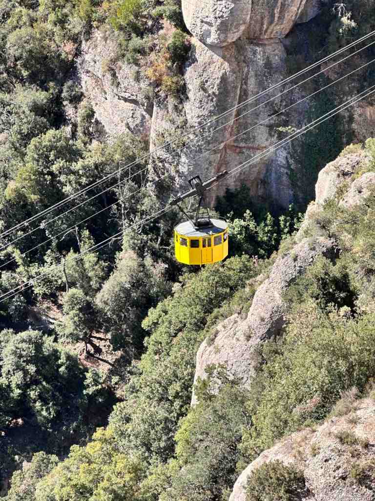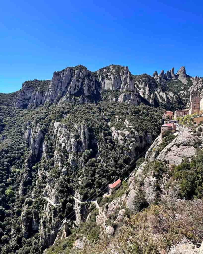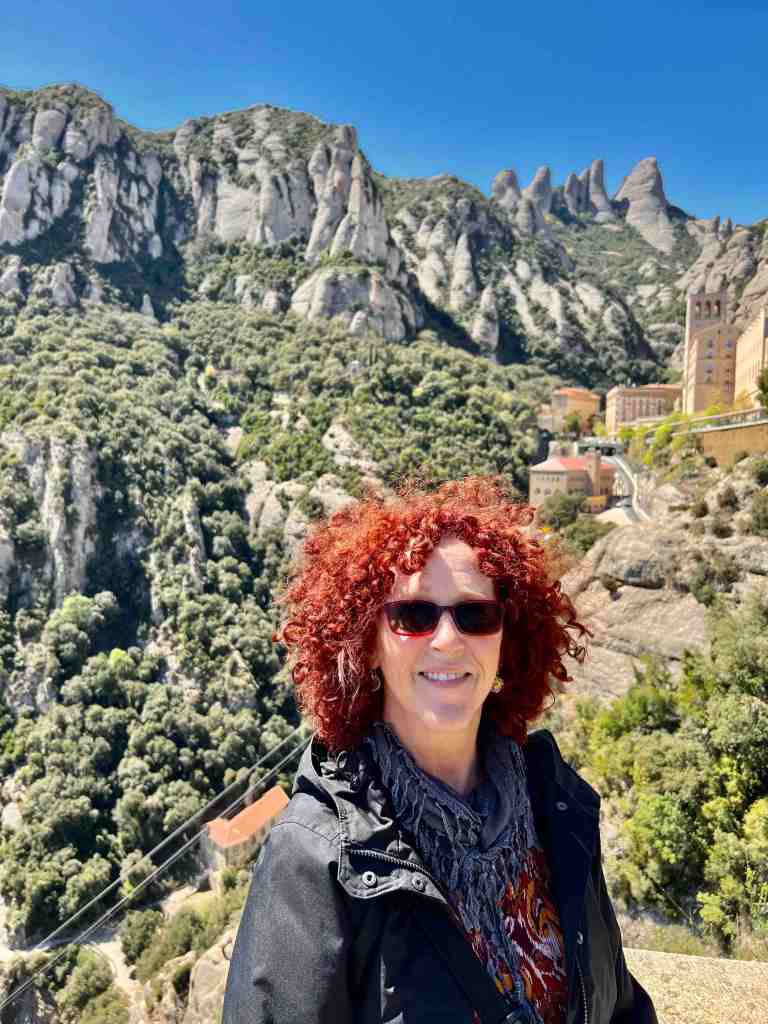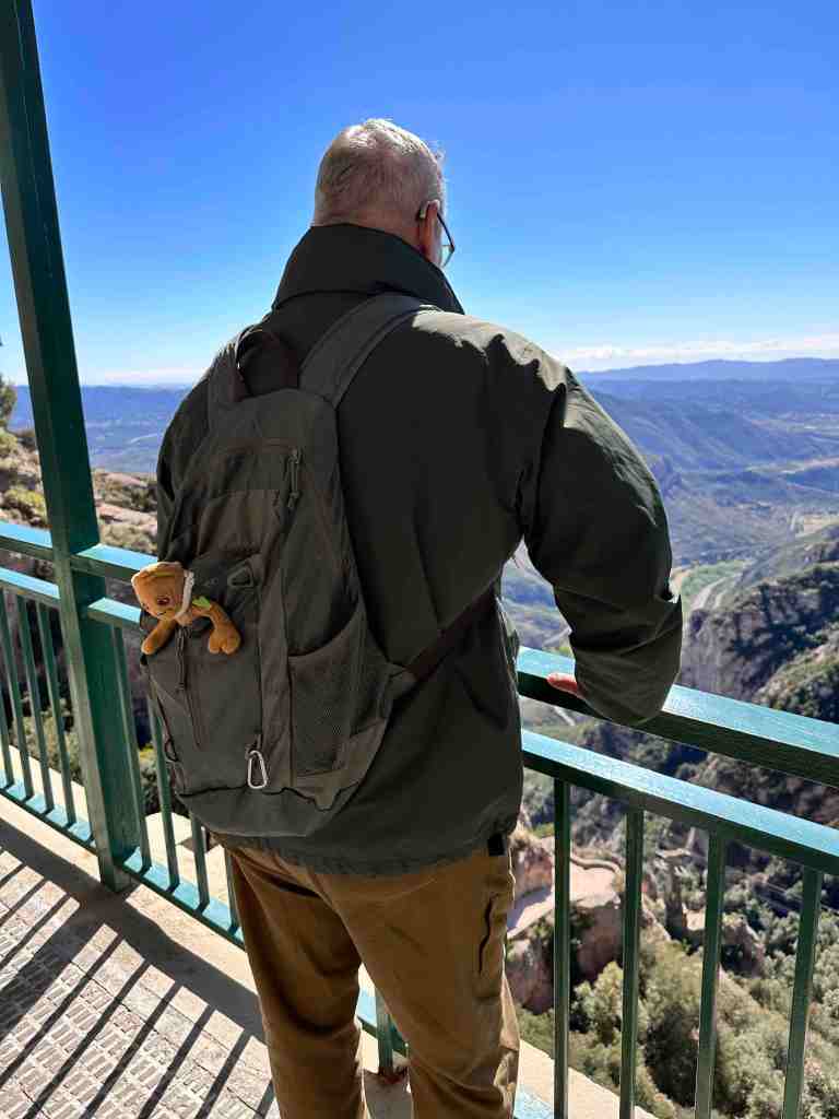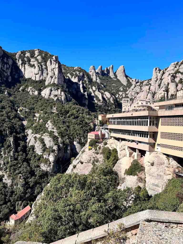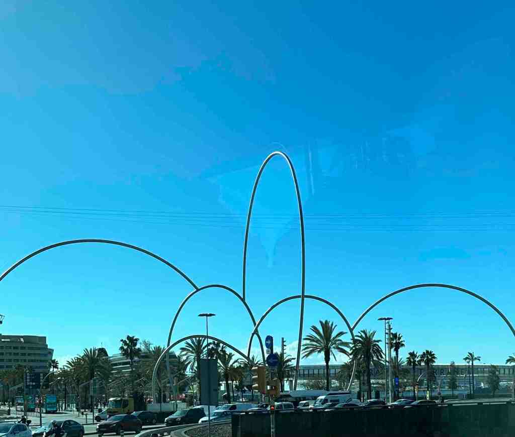 We booked a tour this morning to the famous monastery of Santa Maria de Montserrat (a Benedictine monastery located in the Catalonia region of Spain).  We took a bus from the port into Barcelona.  I remember walking from the port into Barcelona last time we were here.  We saw the Olympic Rings from 1992 Summer Games and not far from that, a very tall monument (almost 200’ column) with a 23’ statue of Christopher Columbus at the very top.  He seemed to almost be in the clouds.  The monument was built for the World’s Fair (1888) in Barcelona.  The monument recalls that it was Barcelona that Columbus reported to Queen Isabel and King Ferdinand after his most famous voyage and is said to be pointing to the New World (do you recall as kids the teacher would say ‘In 1492, Columbus sailed the ocean blue’).