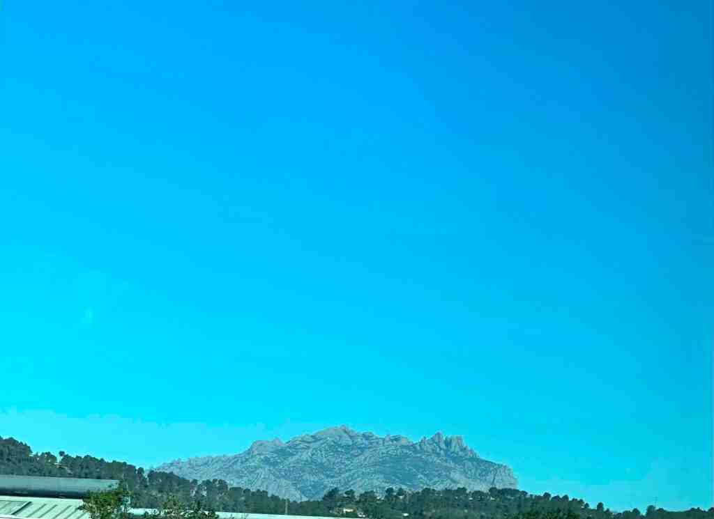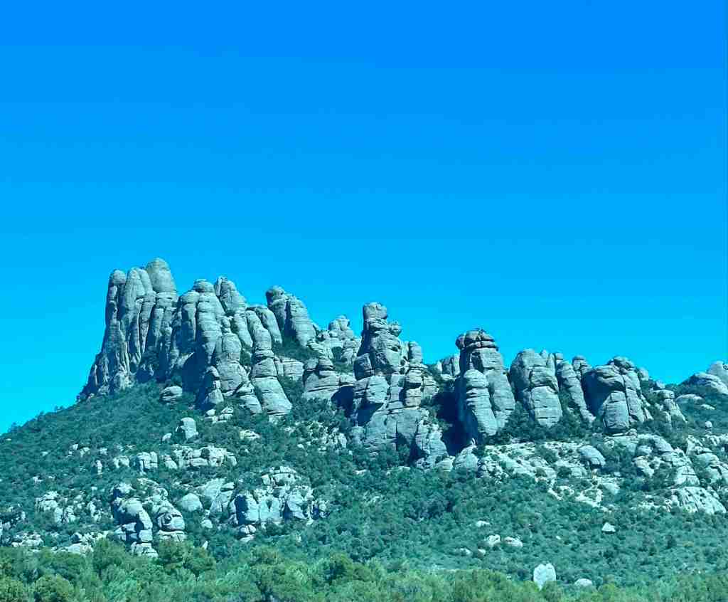 As we traveled, we again saw some nice agricultural areas and then off in a distance, a very strange looking jagged rock.  It’s famous for its unusual appearance and known to the Romans as ‘saw-toothed mountain’.  It’s elevation is 4,055’.  As we got closer, this mountain rose in front of us.  We started driving up the twisty, windy road.  The view is incredible.  We could see the Pyrenees Mountains in one direction and the Mediterranean Sea in another.  Hikers come here to watch the sunrise, which I’m sure is spectacular. There is also an option to take a cable car to the top.  Looked like a great ride too.