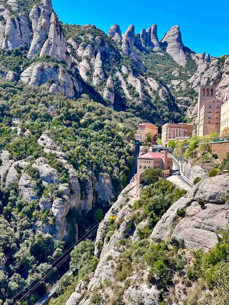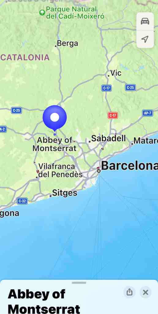 We’re heading north out of Barcelona into the Catalonia region.  Catalonia is in northeastern Spain and is known for lively beach resorts of Costa Brava as well as the Pyrenees Mountains.  The monastery is considered Catalonia’s most important religious retreat and is hidden high in the craggy Montserrat Mountains.  The world’s oldest publishing house, established in 1499, is also located here.  The complex also contains a library that includes cookbooks of monks dating back 1,000 years.  The Black Virgin of Montserrat is located inside the basilica.  Many pilgrims visit here because they say the statue of the Virgin Mary and her infant son have healing powers.  The Holy Cave of Montserrat once housed the statue.  Three hundred years ago a chapel was built on the side of the mountain.  You can take the funicular higher on the mountain, hike a winding trail along the mountain cliffs and find the chapel.  The Abbey that now houses the statue dates back to the 9th century and legend has it that it was once the home to the Holy Grail.