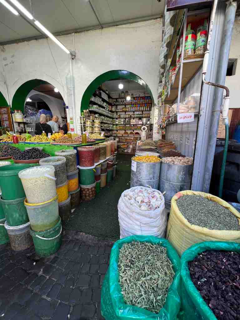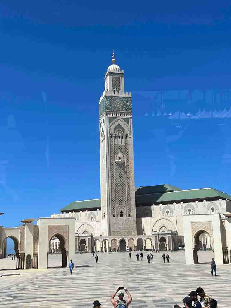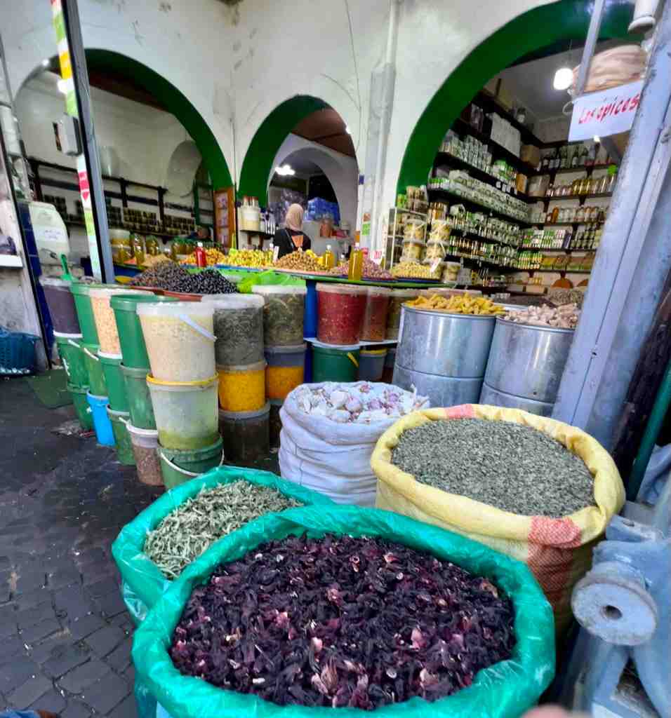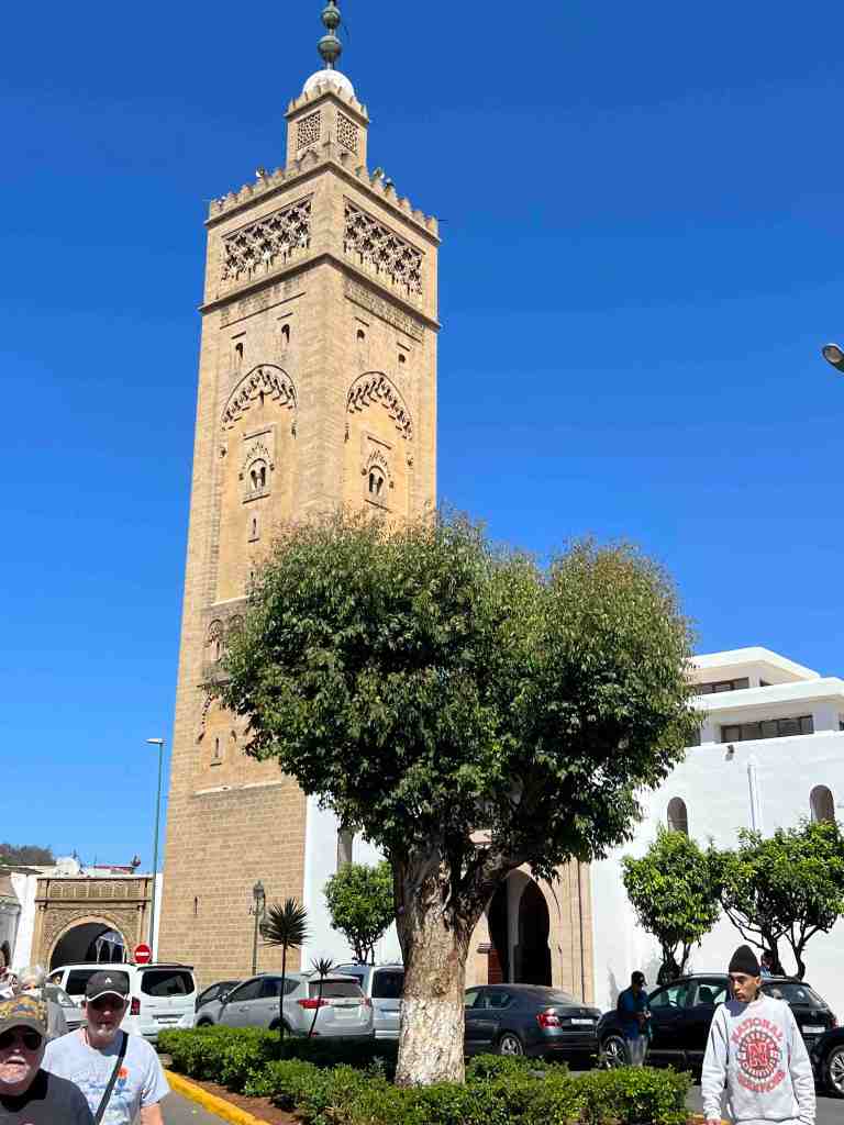 Bob took a tour this morning that was a short city tour. It’s a sunny day with pleasant temperatures. He said the gardens and flowers were beautiful. The highlight of the tour was the Hassan II Mosque. Contemporary technology and traditional Moroccan architecture meet in this vast mosque and esplanade, built in 1993 at the sea’s edge. It boasts the world’s tallest minaret, towering over 650 feet. It’s the world’s second largest mosque and can accommodate 25,000 worshippers in its interior and 85,000 on the esplanade. It’s topped with a laser beam that shines at night in the direction of Mecca. Bob said the view from the sea side was quite stunning. They continued driving through the city and stopped at the Habous Quarter. Narrow streets lead to lively souks (bazaars) and open markets, brimming with local wares, colorful fruits, figs, olive vendors and great spice shops. He said the nice part was, not a lot of junkie souvenir vendors because this city is not really about tourism. It’s about day to day life. The market was very busy because it’s the end of Ramadan. He was told tradition is at the end of Ramadan, the family purchases new clothing (maybe like ‘going back to school’ sales at home – lol). Bob said he really enjoyed seeing and smelling the fragrance of the spices.