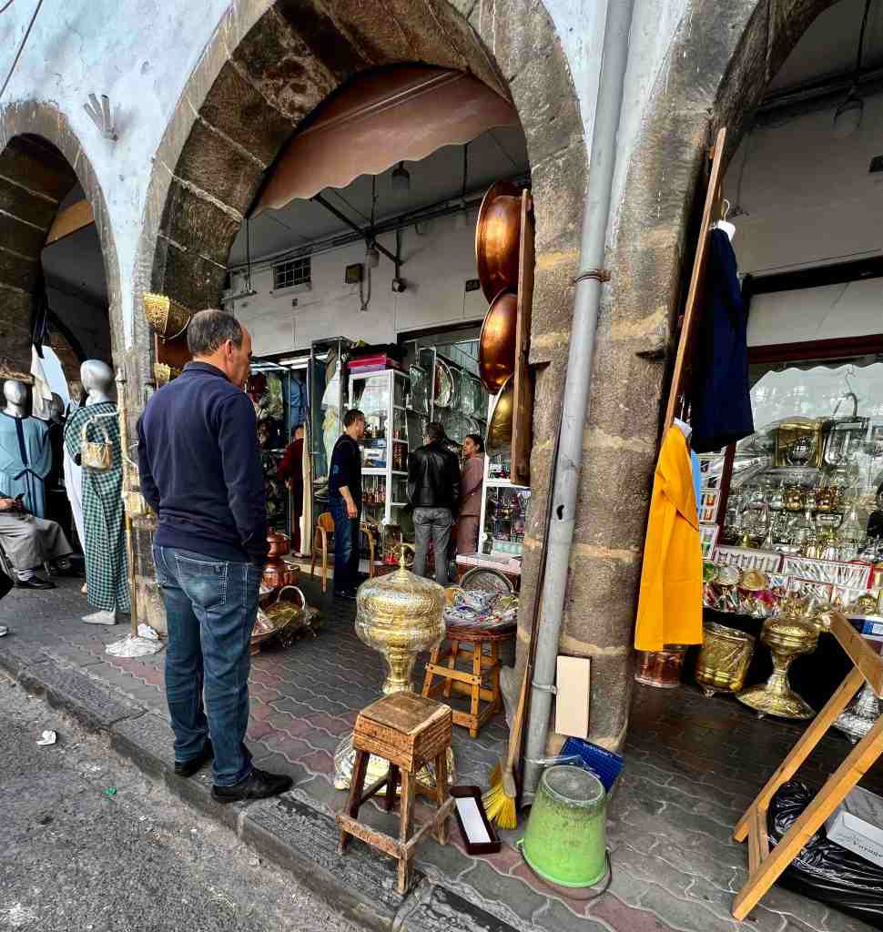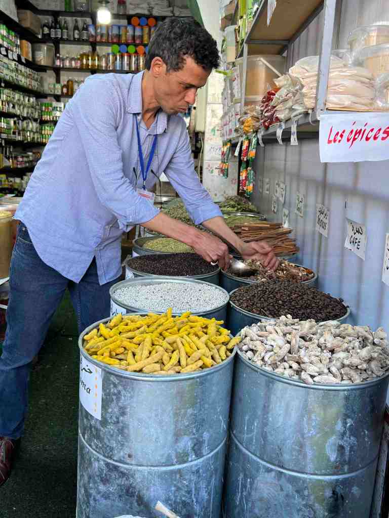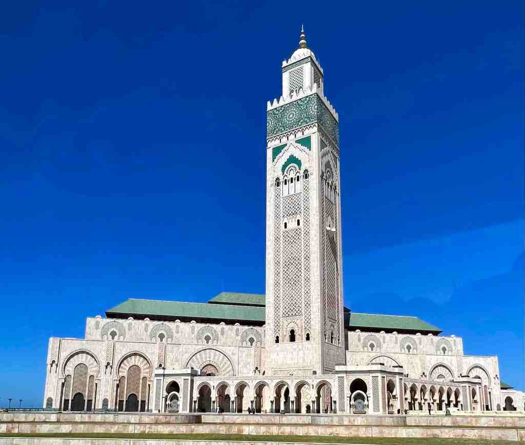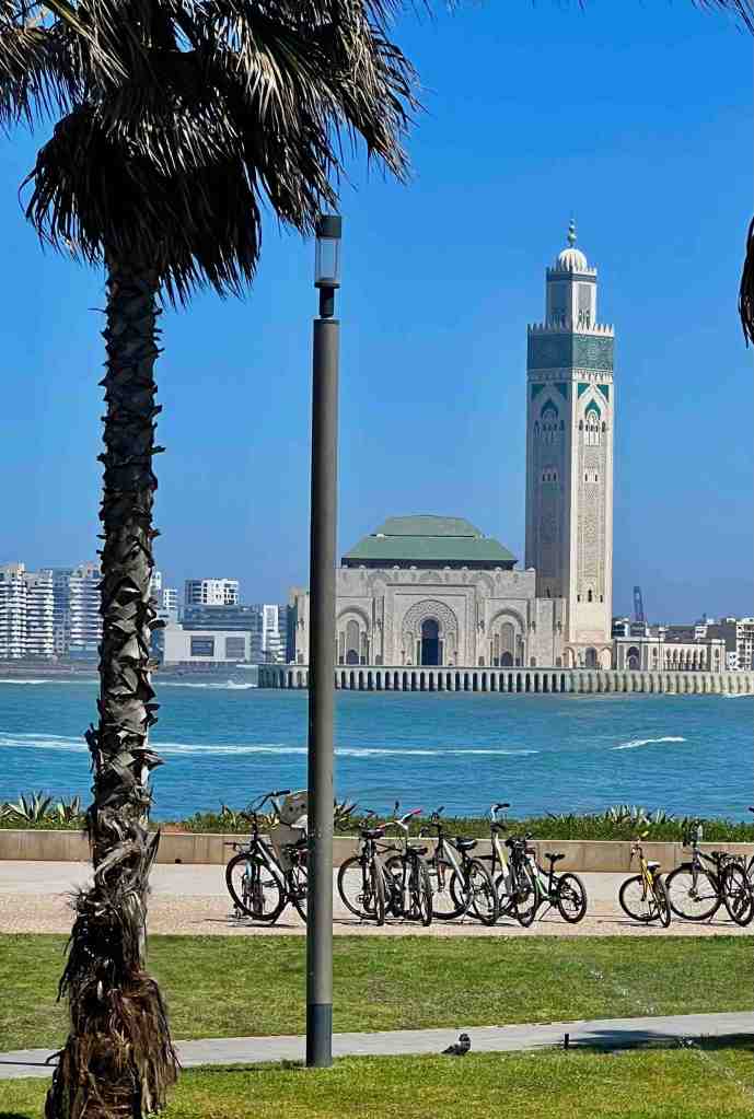 Bob took a tour this morning that was a short city tour. It’s a sunny day with pleasant temperatures. He said the gardens and flowers were beautiful. The highlight of the tour was the Hassan II Mosque. Contemporary technology and traditional Moroccan architecture meet in this vast mosque and esplanade, built in 1993 at the sea’s edge. It boasts the world’s tallest minaret, towering over 650 feet. It’s the world’s second largest mosque and can accommodate 25,000 worshippers in its interior and 85,000 on the esplanade. It’s topped with a laser beam that shines at night in the direction of Mecca. Bob said the view from the sea side was quite stunning. They continued driving through the city and stopped at the Habous Quarter. Narrow streets lead to lively souks (bazaars) and open markets, brimming with local wares, colorful fruits, figs, olive vendors and great spice shops. He said the nice part was, not a lot of junkie souvenir vendors because this city is not really about tourism. It’s about day to day life. The market was very busy because it’s the end of Ramadan. He was told tradition is at the end of Ramadan, the family purchases new clothing (maybe like ‘going back to school’ sales at home – lol). Bob said he really enjoyed seeing and smelling the fragrance of the spices.