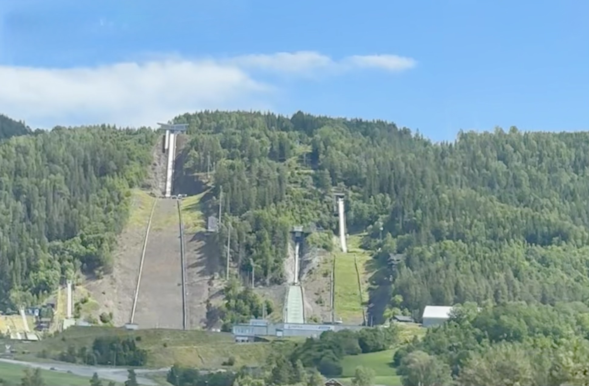 We saw ski jumps coming up. Holmenkollbakken is a large ski jumping hill in Oslo. It has hosted many Nordic World Ski Championships and also hosted the 1952 Winter Olympics. Do you believe, it was opened in 1892. The hill has been rebuilt 19 times with important upgrades. Between 2008 and 2010, the entire structure was demolished and rebuilt. It remains a prominent venue for major ski jumping.
