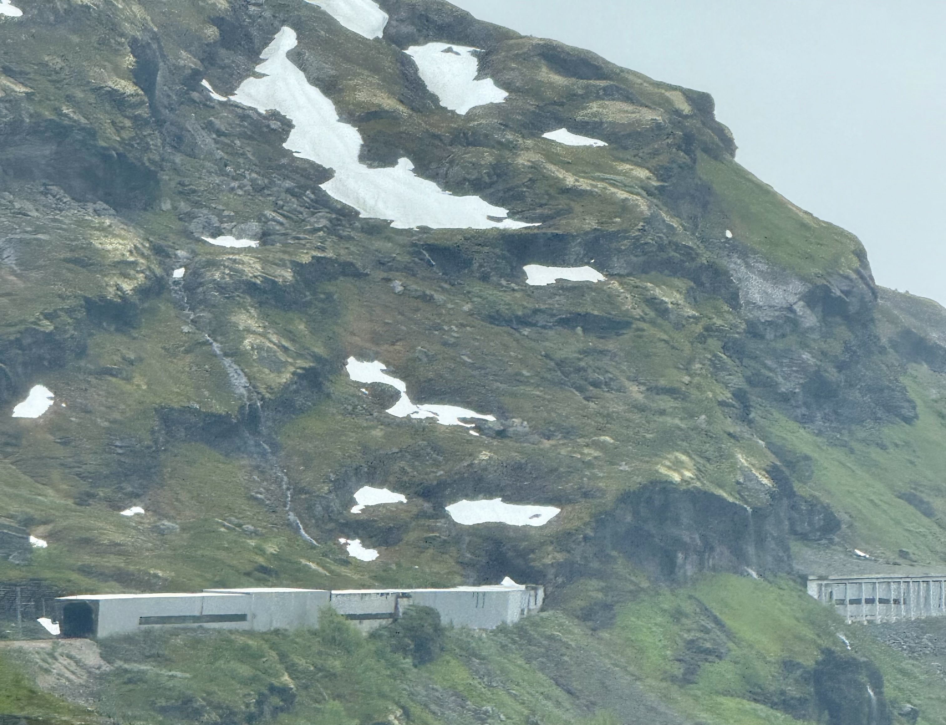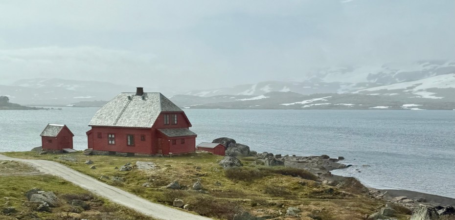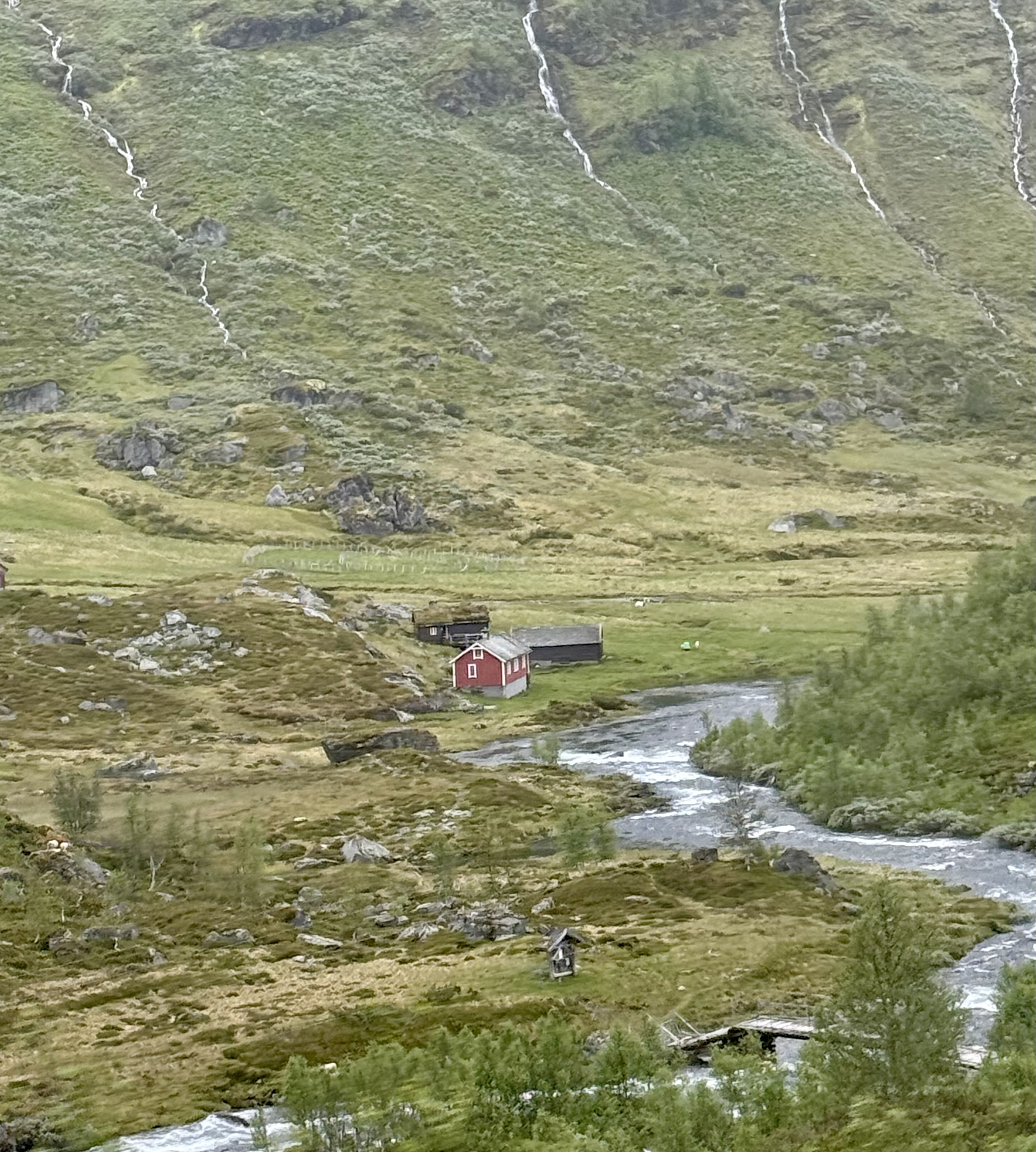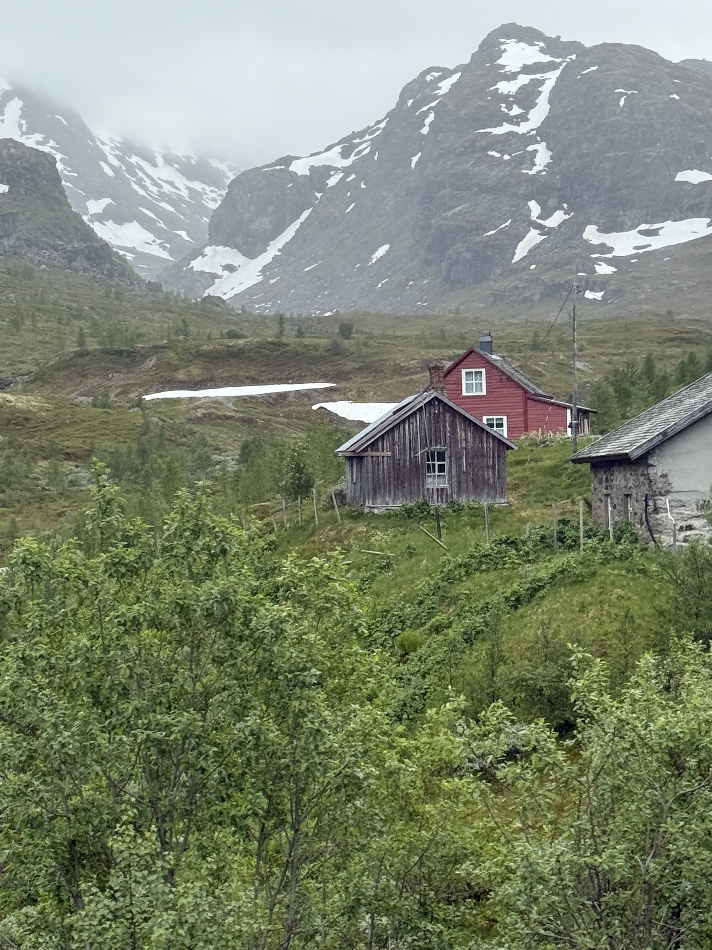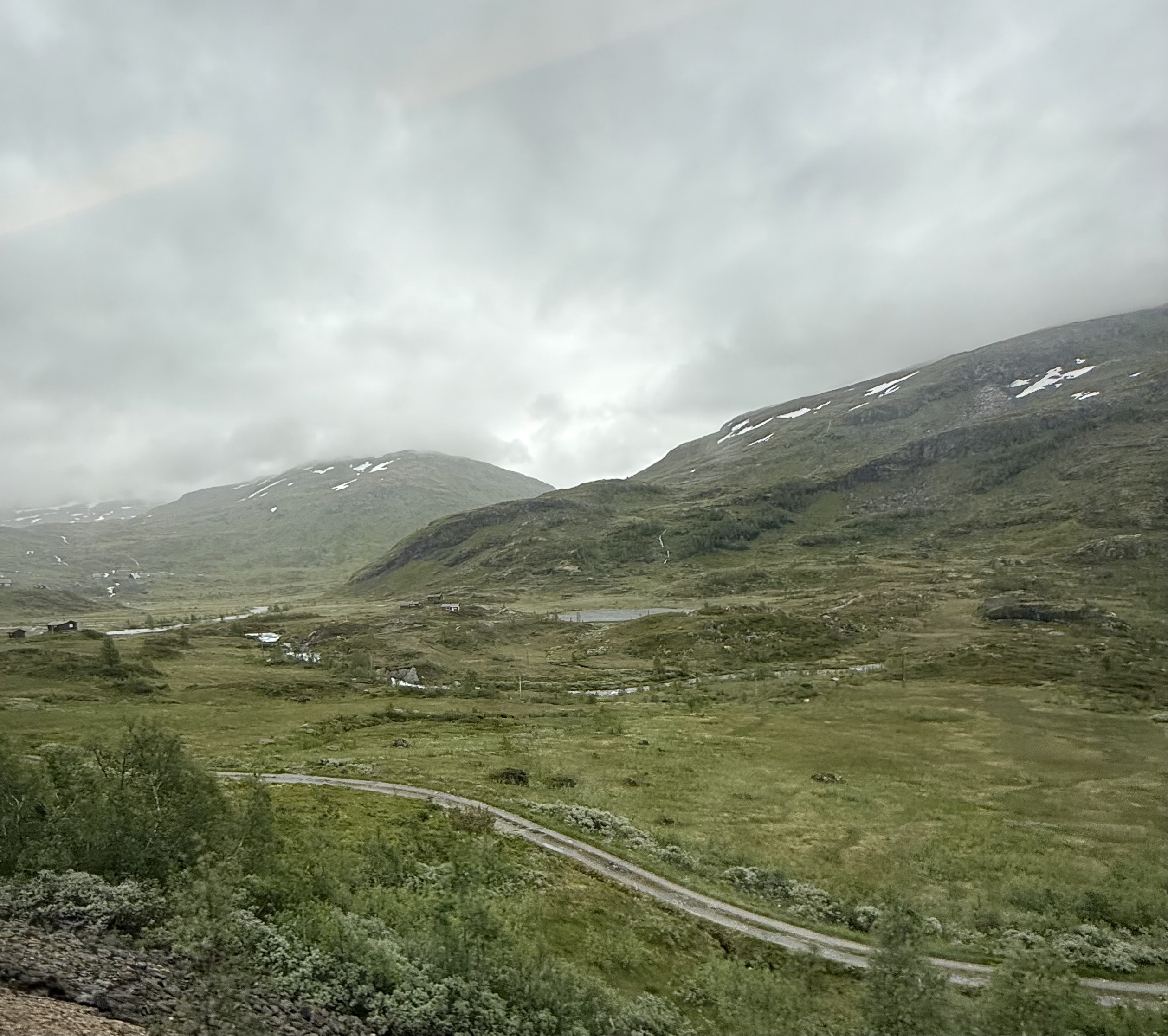 We recognized one of our stops because we were just there last week. Voss. We saw the hotel that the nazi’s occupied because the train station is right there. Voss is northeast of Bergen. Now we’re heading higher into the mountains were you see avalanche sheds and big steel fences to protect communities from landslides.