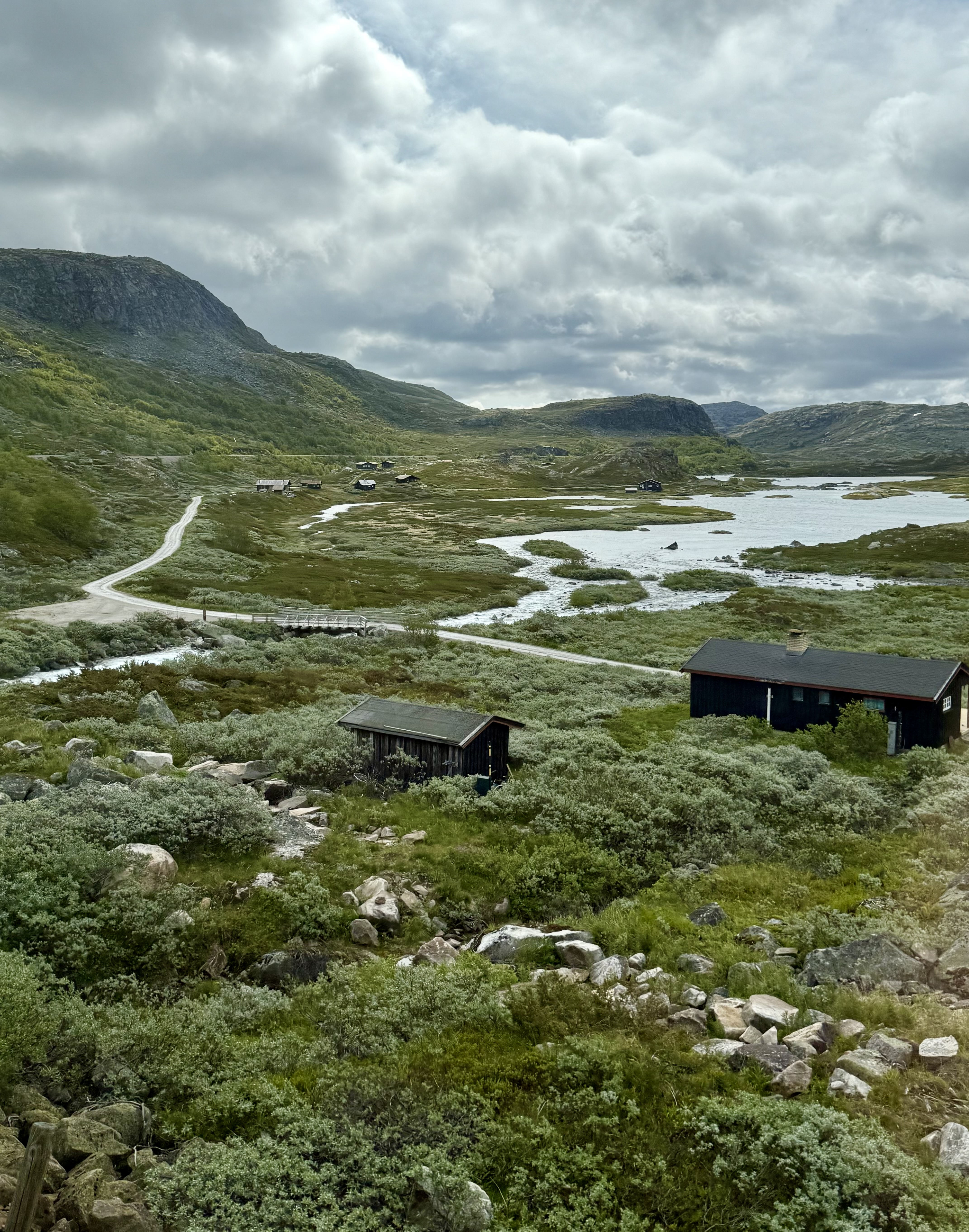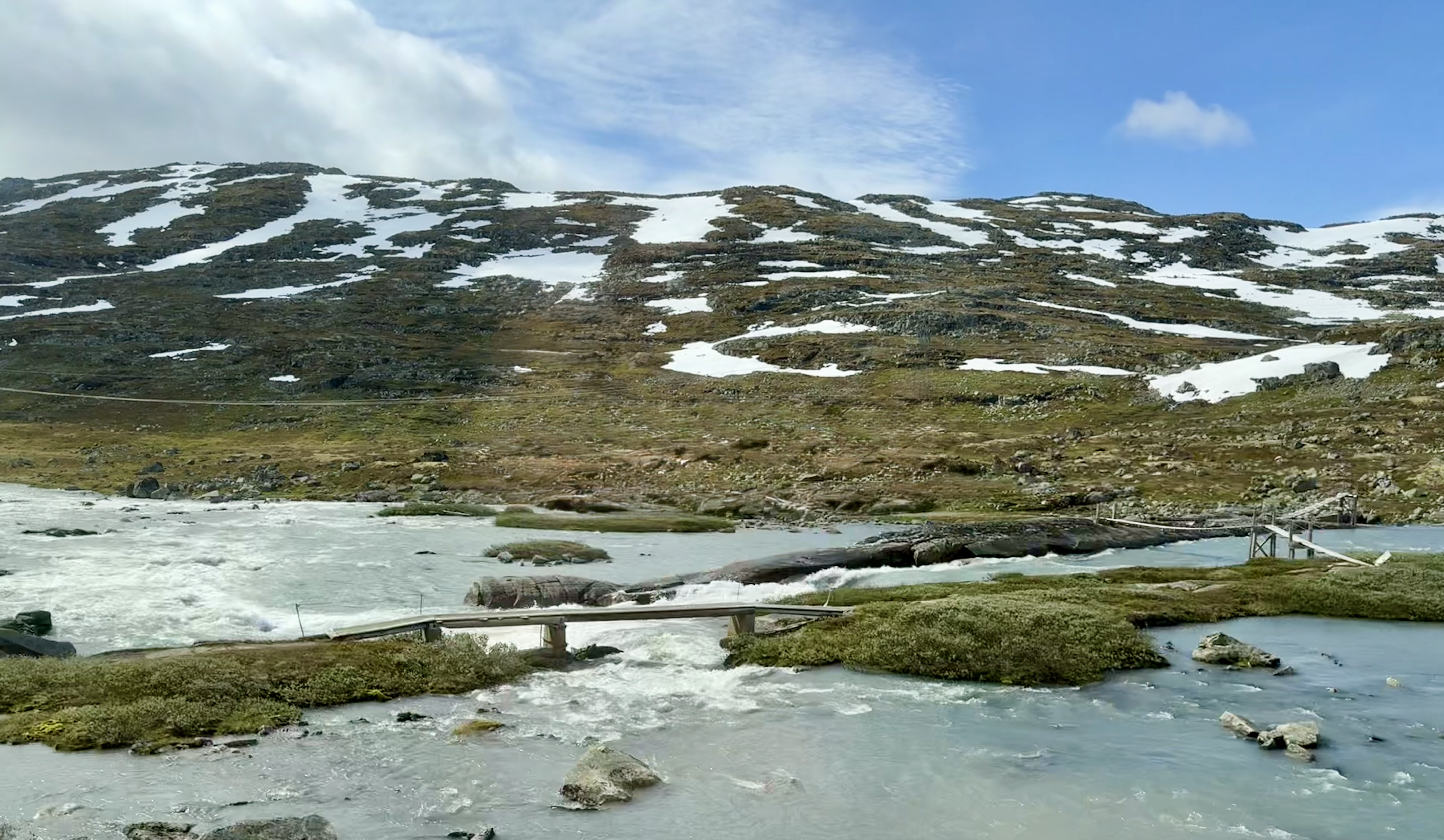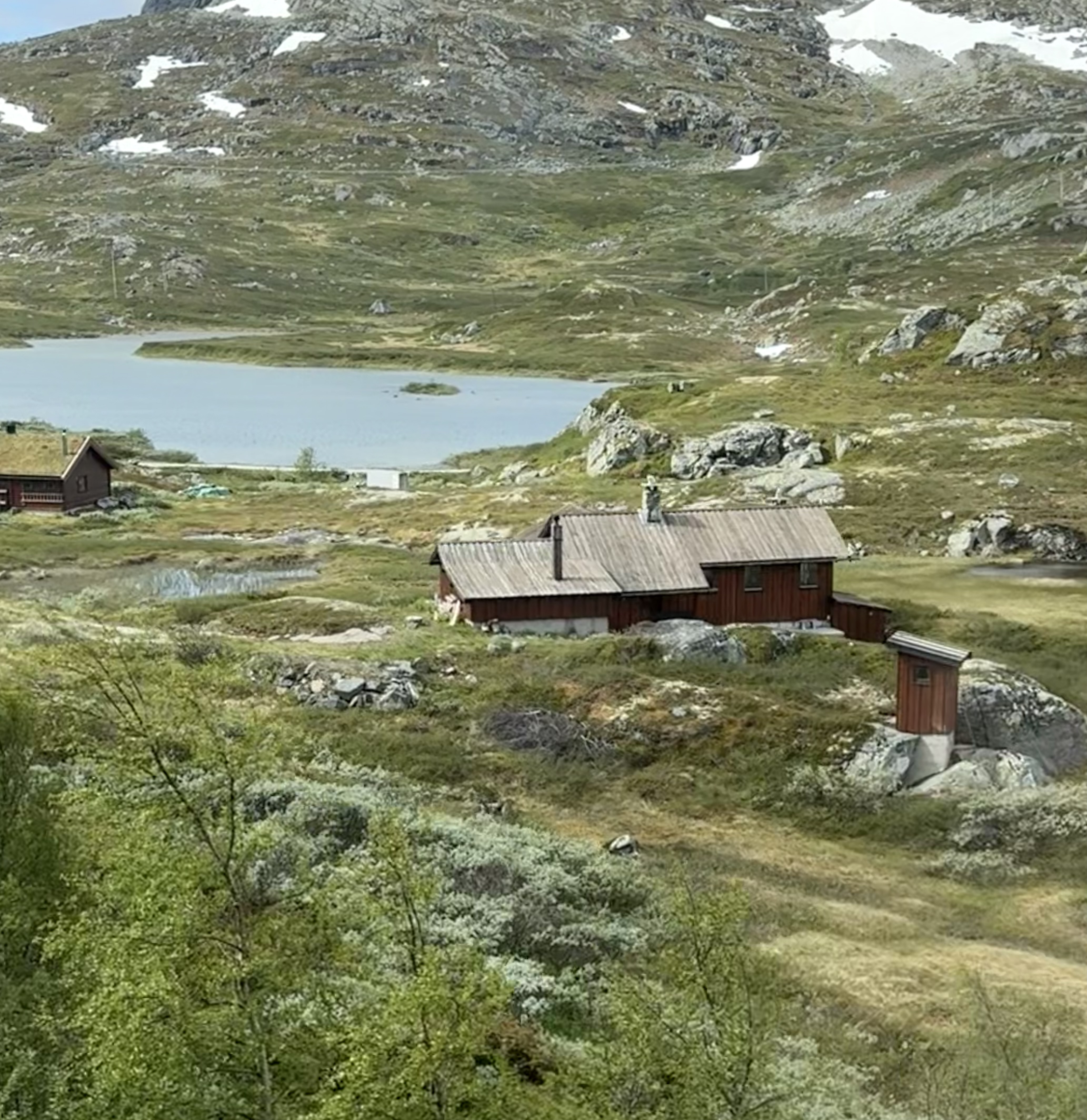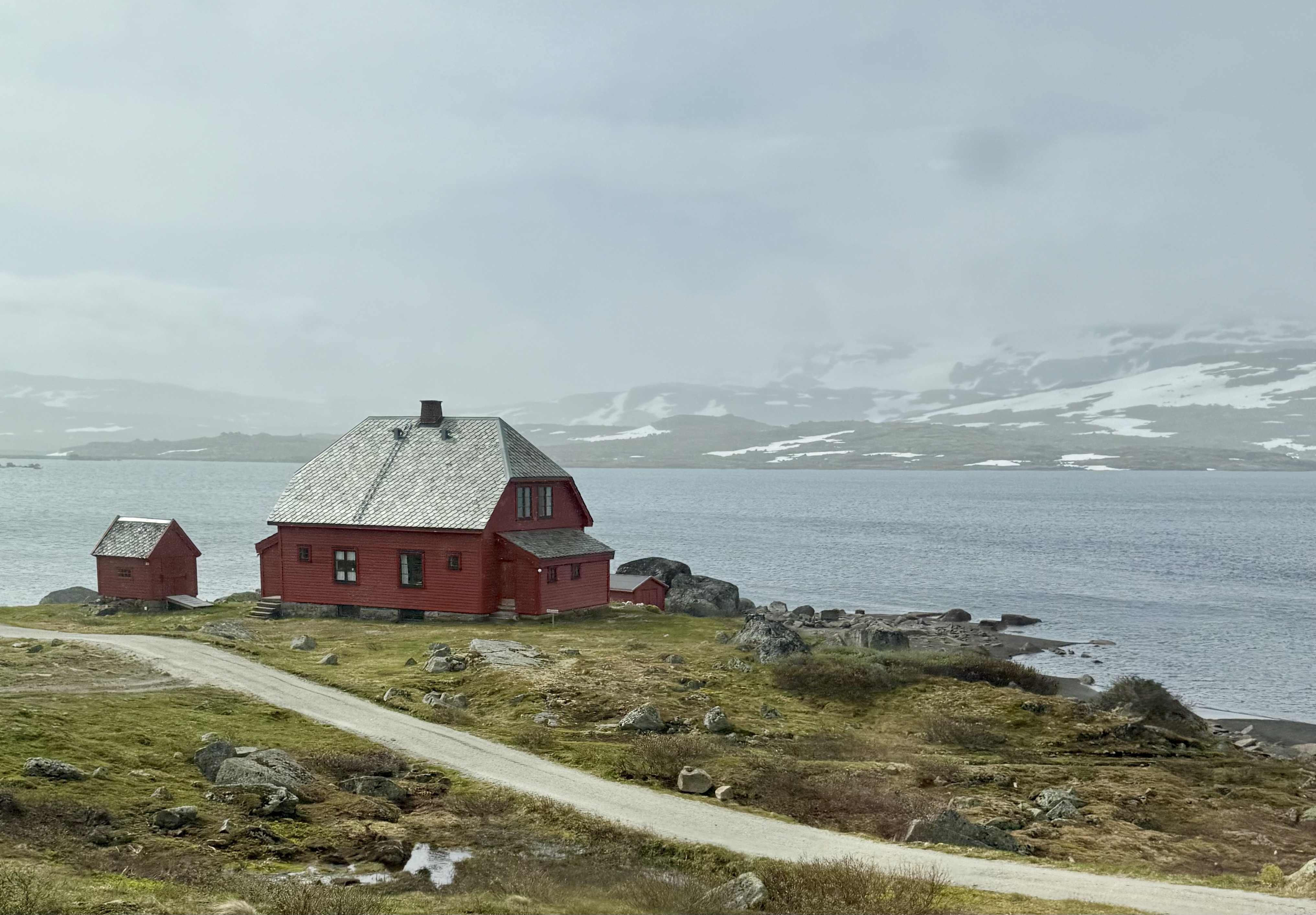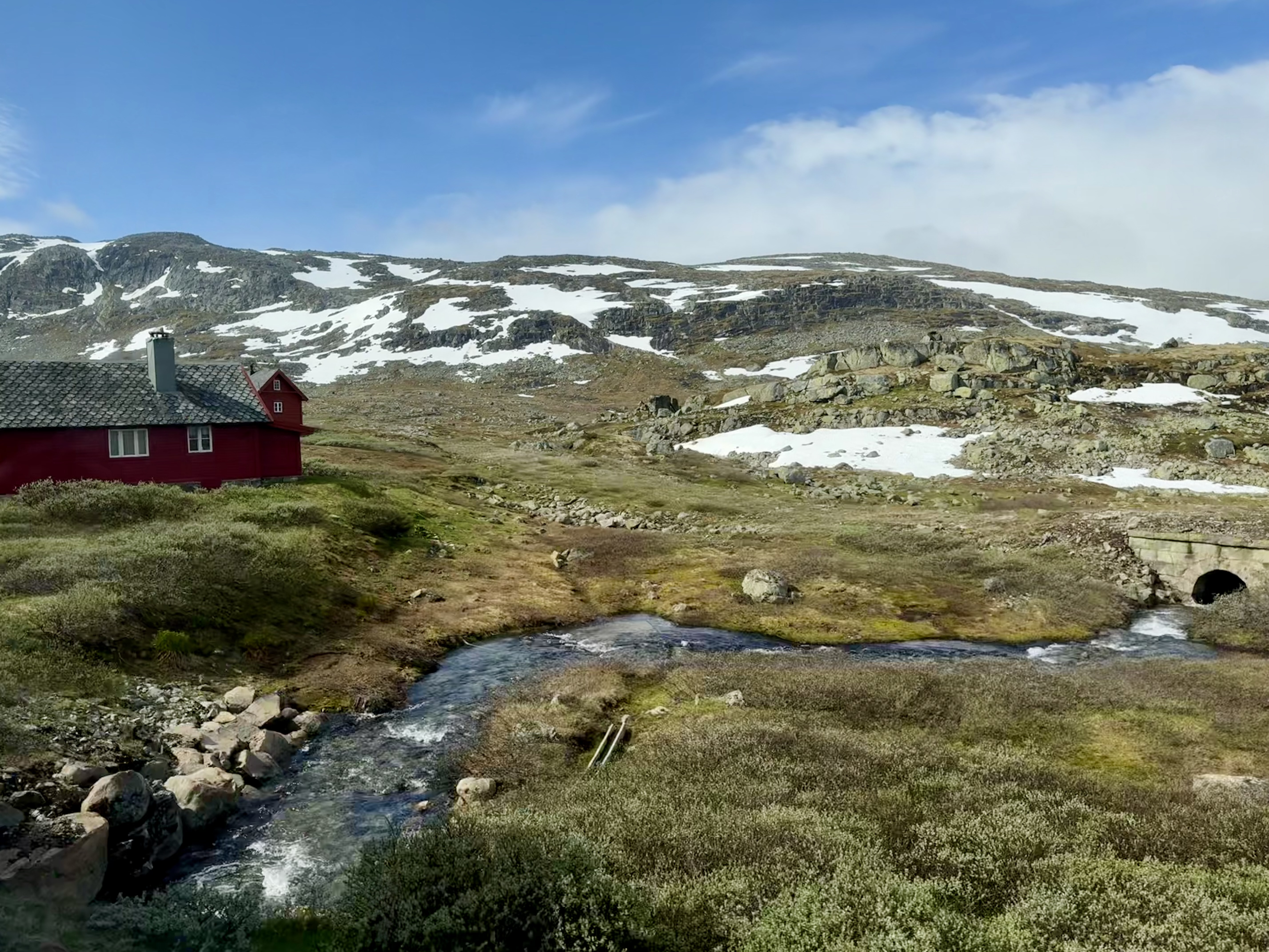 We recognized one of our stops because we were just there last week. Voss. We saw the hotel that the nazi’s occupied because the train station is right there. Voss is northeast of Bergen. Now we’re heading higher into the mountains were you see avalanche sheds and big steel fences to protect communities from landslides.