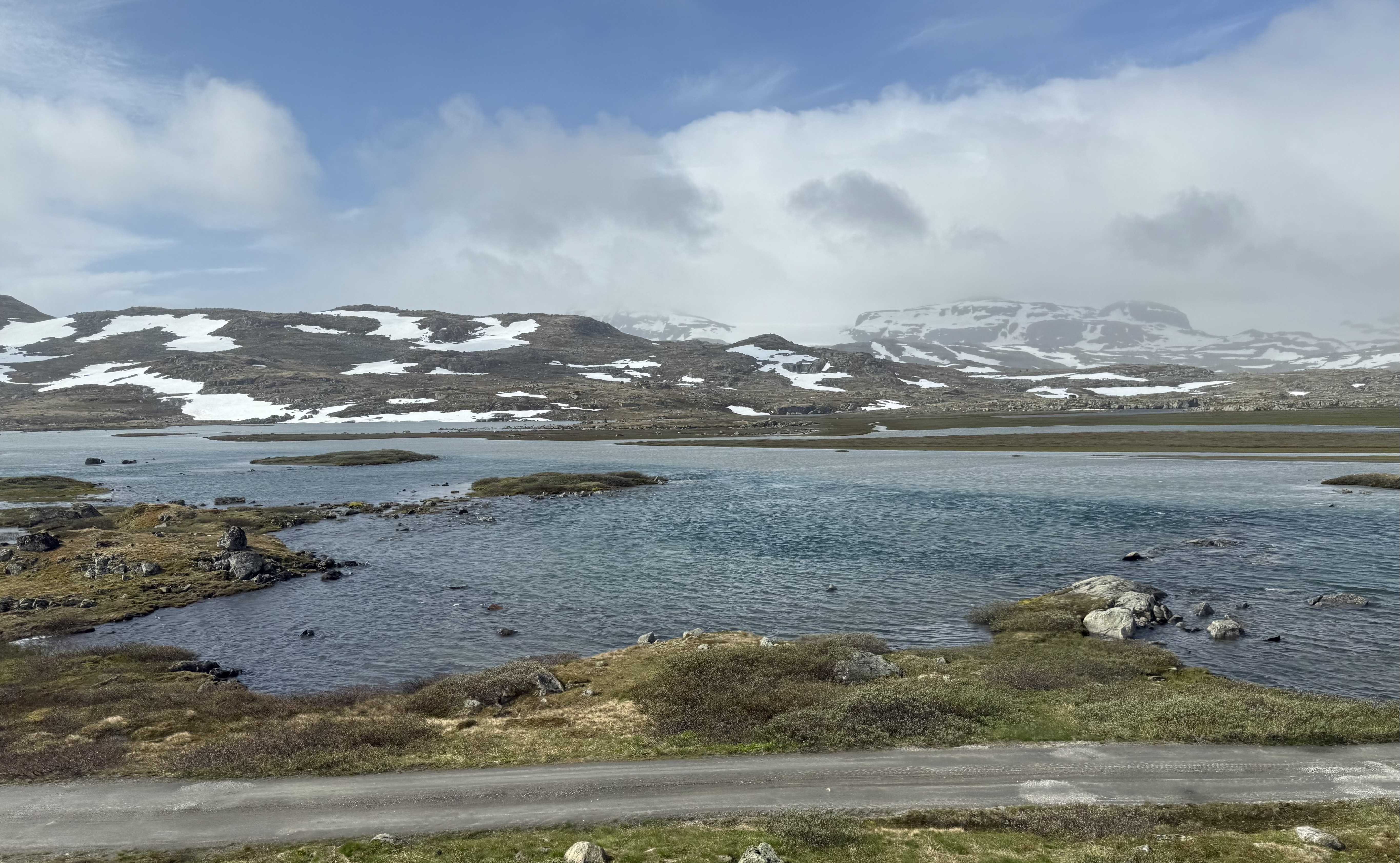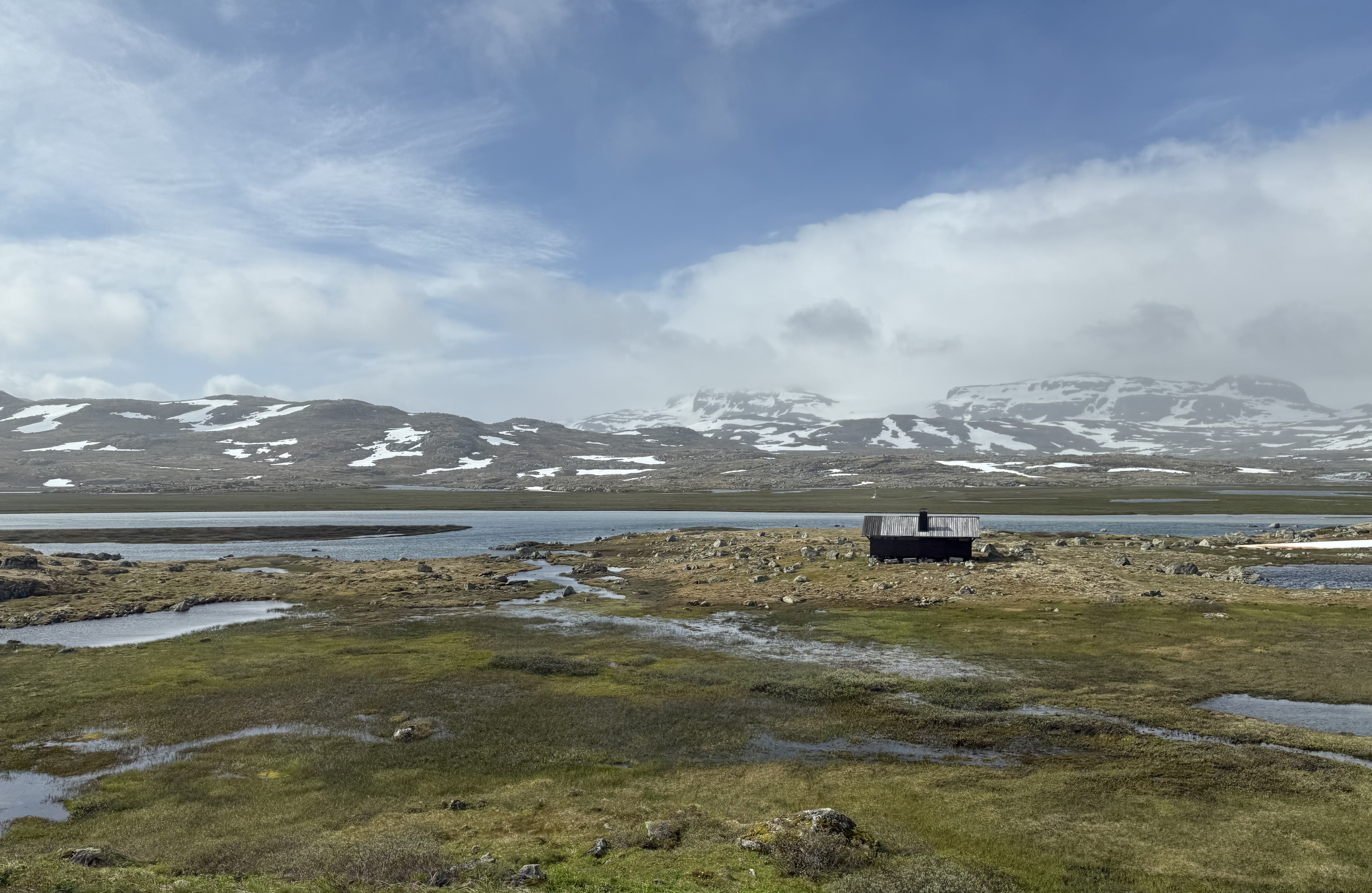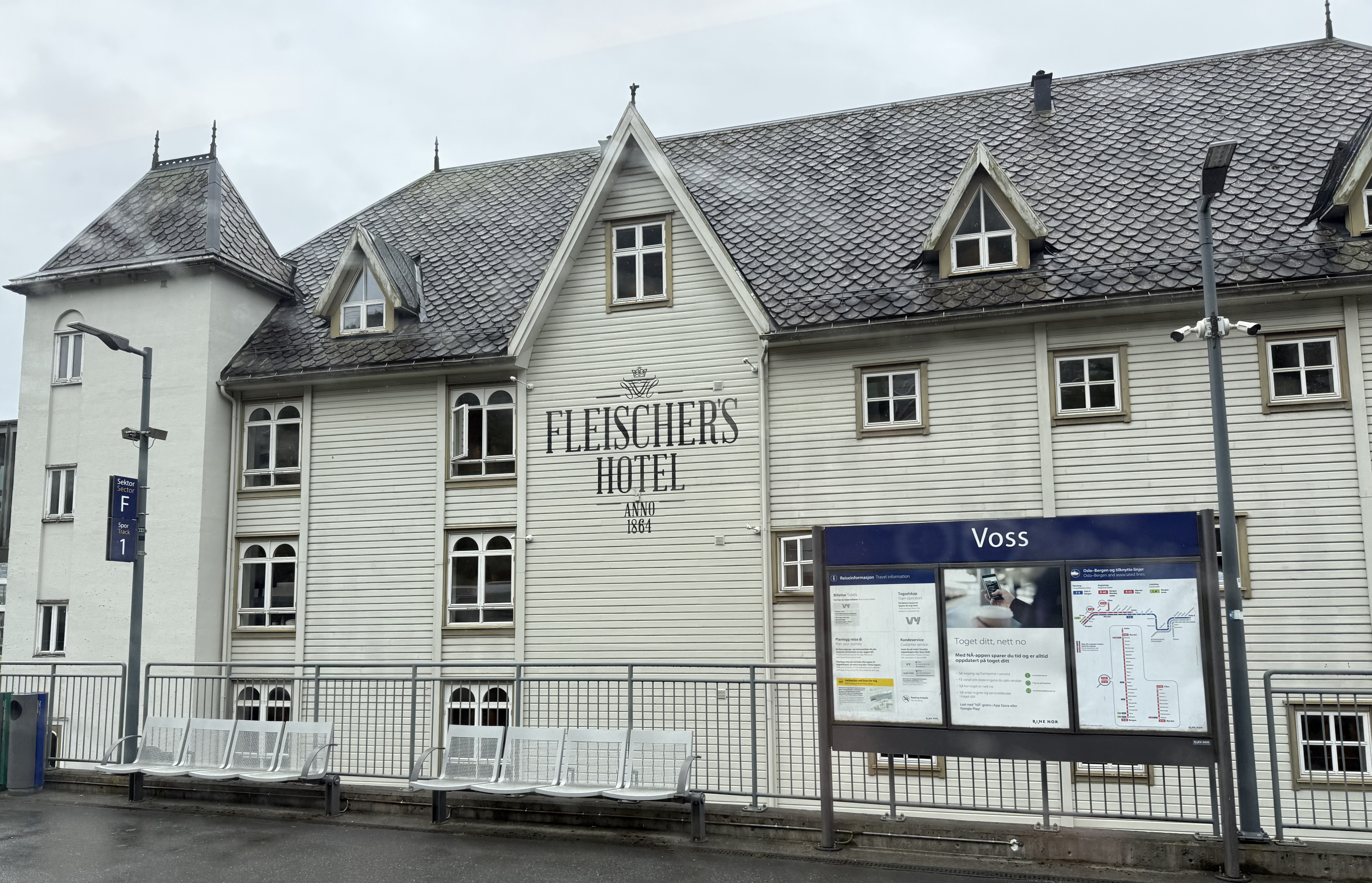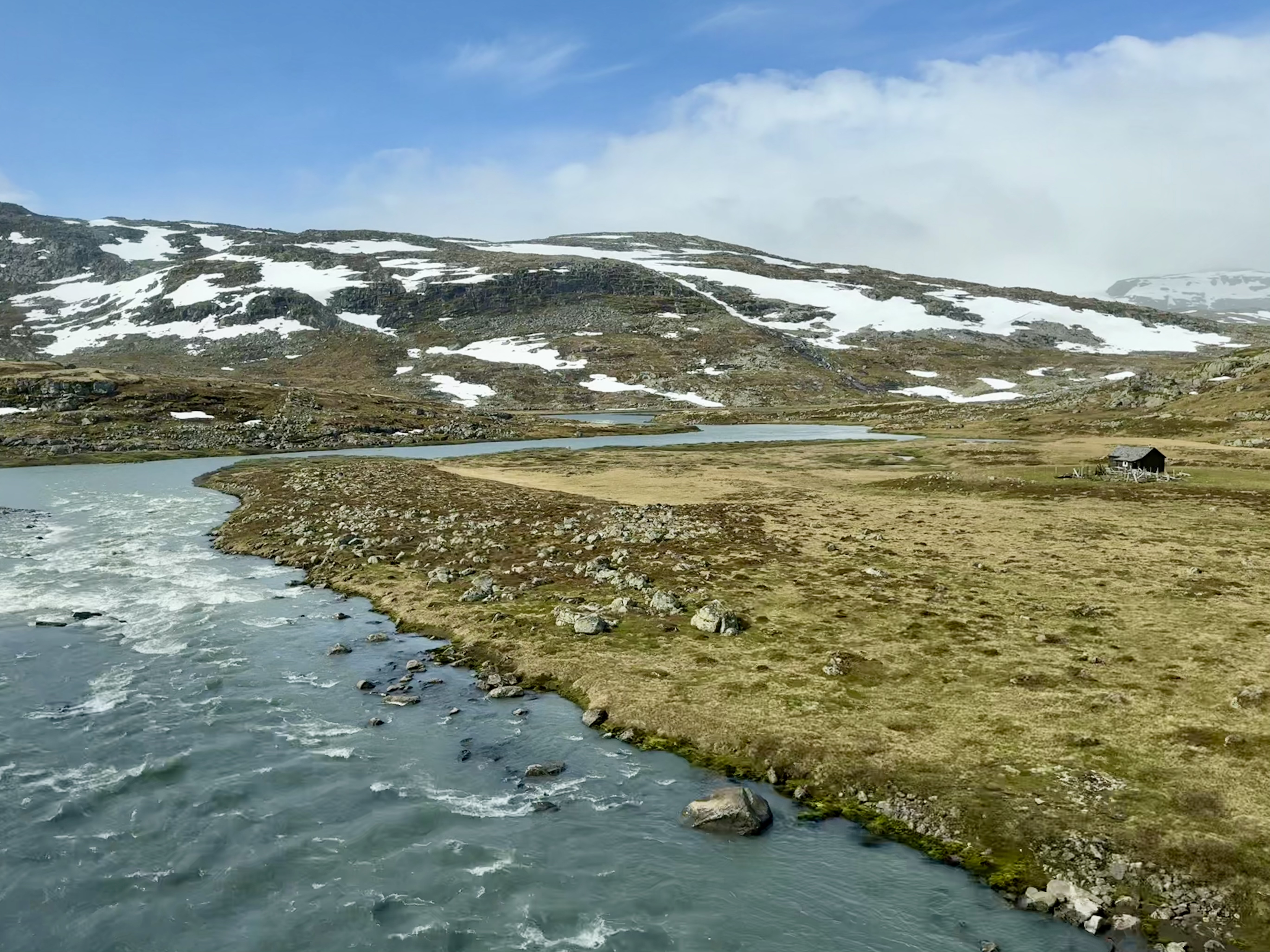 We recognized one of our stops because we were just there last week. Voss. We saw the hotel that the nazi’s occupied because the train station is right there. Voss is northeast of Bergen. Now we’re heading higher into the mountains were you see avalanche sheds and big steel fences to protect communities from landslides.
