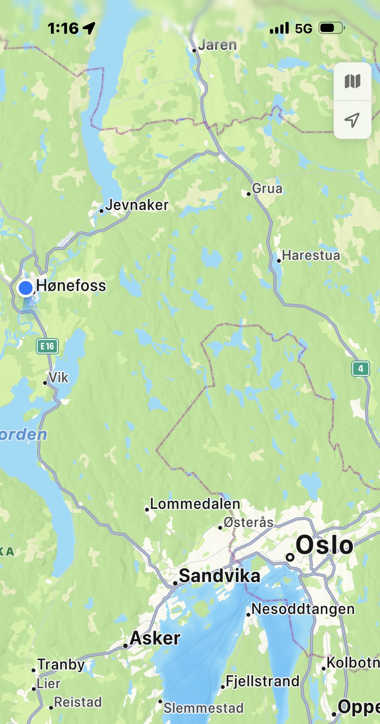 We left the alpine area and started coming down the mountains to farming communities. The farms in Norway are good-looking and seem to be very well kept. We saw many as we drew closer to Oslo.